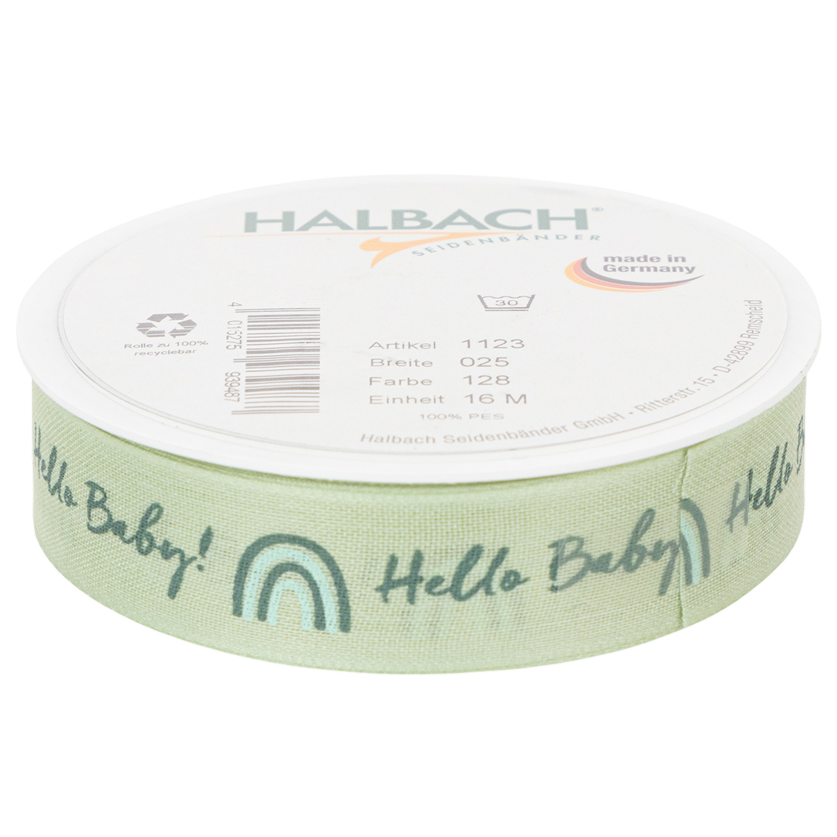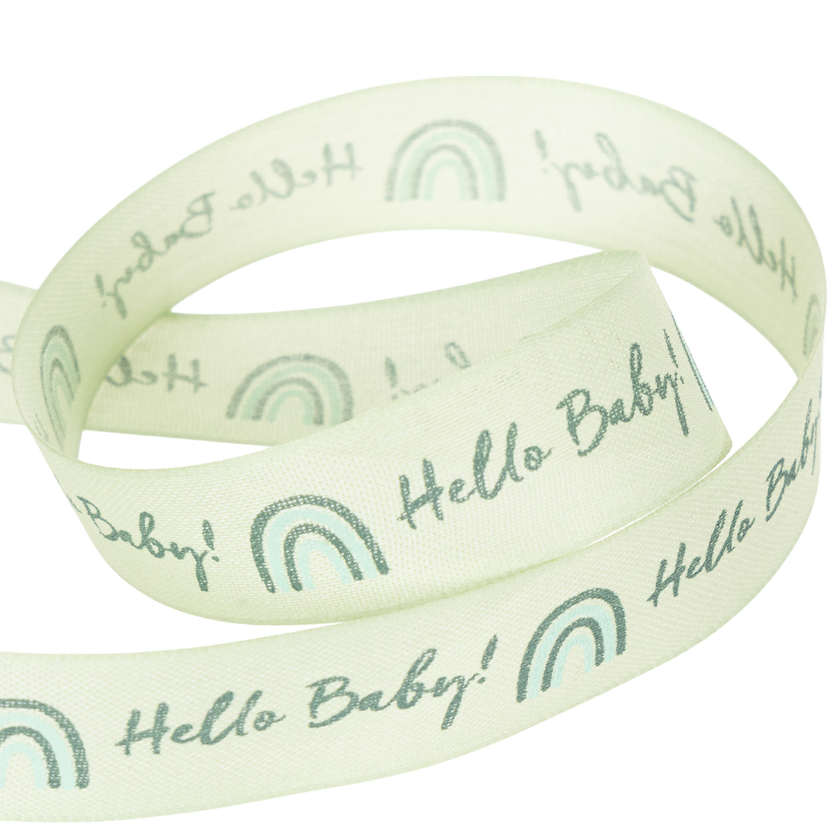 Produkto pavadinimas: Dovanų juostelė „Hello Baby“ dekoratyvinė juostelė žalia 25 mm 16 m