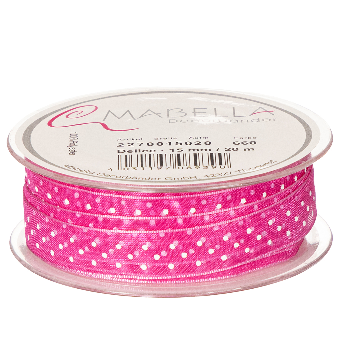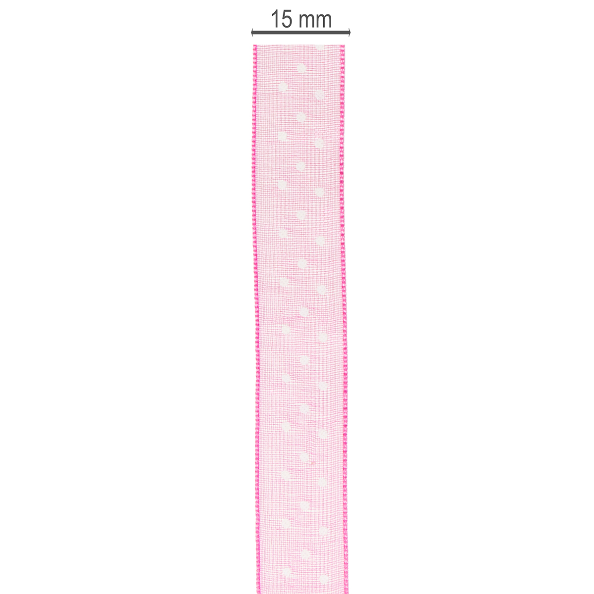 Subtilus rožinės ir rausvos spalvų derinys, papildytas elegantišku taškuotu raštu, suteikia juostelei romantišką ir kartu linksmą žavesį. Aukštos kokybės 100 % poliesterio medžiaga užtikrina ilgalaikę kokybę ir spindesį. O svarbiausia: dėl tobulų matmenų juostelę lengva užrišti, užverti ar papuošti. Įkvėpkite išlaisvinti savo kūrybiškumą ir paversti paprastus objektus nuostabiais meno kūriniais!