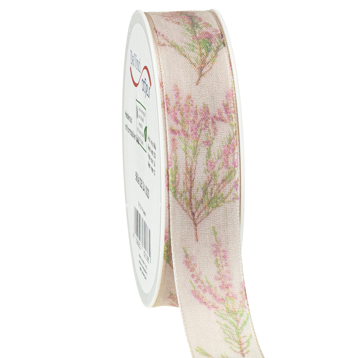 Dovanų kaspinas rudeninis viržių medžiaginis kaspinas 25mm 20m