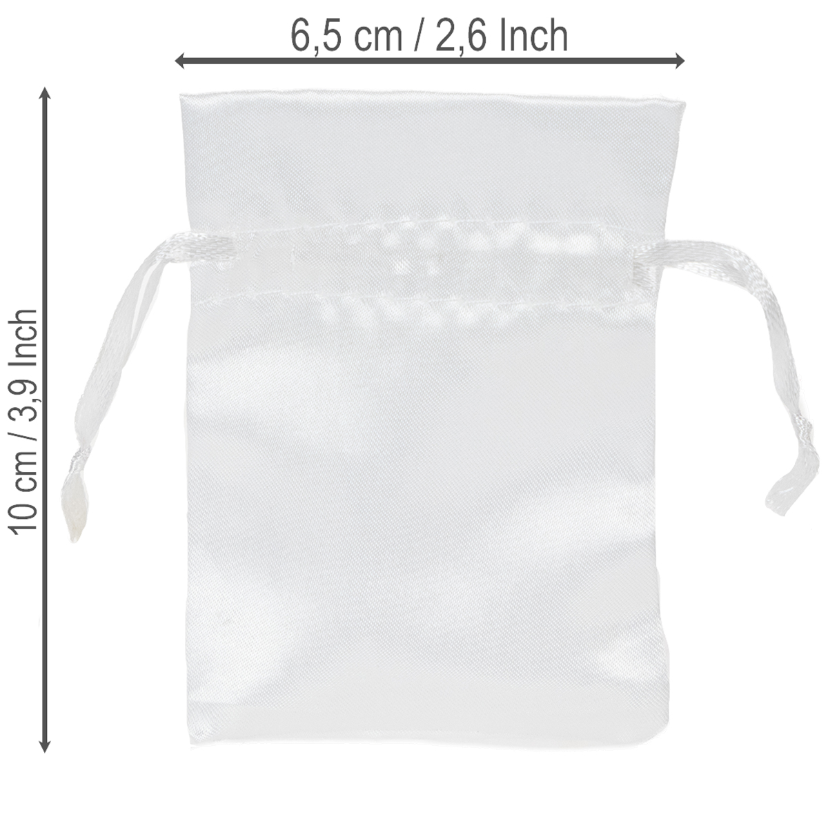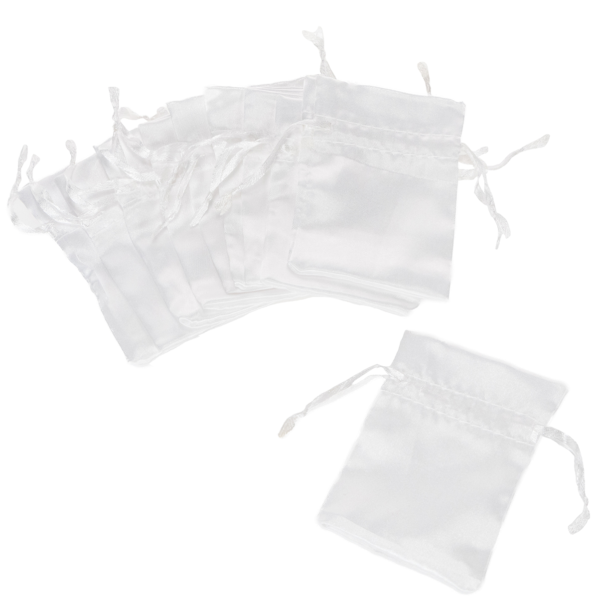 Dovanų maišeliai, atlasiniai maišeliai, balti, 6,5 x 10 cm, 10 vnt.