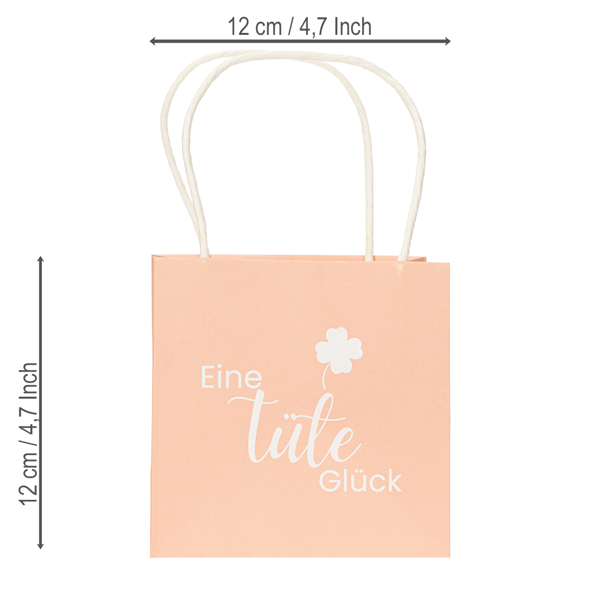 Dovanų maišelis su spauda „Laimės maišelis“ mieloms dovanų idėjoms, 12 cm, 12 vnt.