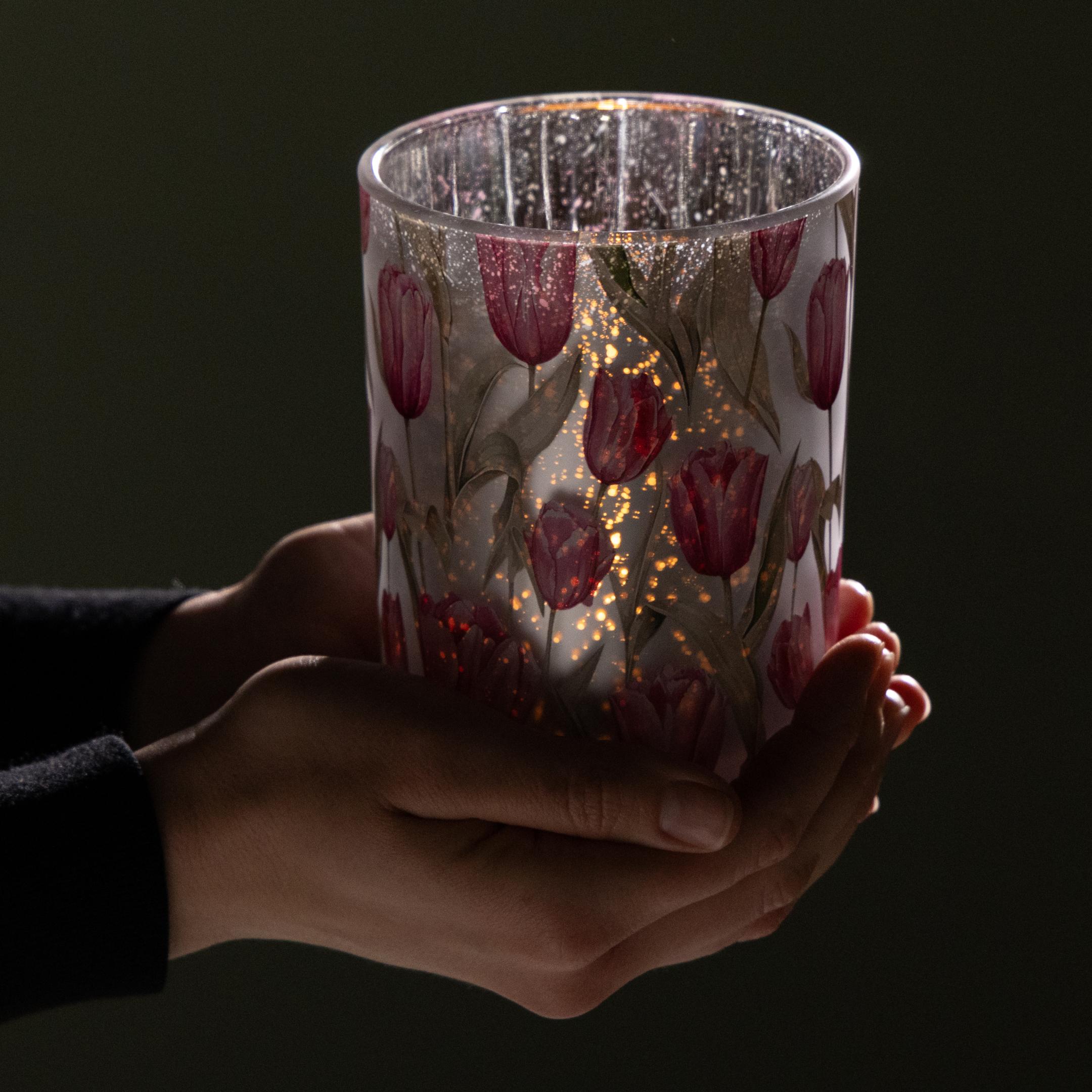 Kas gali būti geriau nei įnešti pavasarį į namus su žavinga dekoracija? Šis elegantiškas tulpių tematikos žibintas būtent tai ir daro: jis sukuria šiltą, harmoningą atmosferą, kuri kviečia pasilikti. Meiliai pavaizduotos rožinės ir baltos tulpės ant aukštos kokybės stiklo akimirksniu bet kuriame kambaryje sukuria pavasariško lengvumo prisilietimą. O uždegus žvakę viduje, veidrodinis, ryškus paviršius atskleidžia savo kerinčią šviesos ir šešėlio sąveiką. Nesvarbu, ar jis stovi ant valgomojo stalo, palangės, ar kaip romantiškos vakarienės akcentas – šis žibintas yra tikras perlas. Ar jau jaučiate pavasario nuotaiką? Galbūt planuojate sodo vakarėlį, ieškote stilingų velykinių dekoracijų ar tiesiog norite savo svetainei suteikti sezoninių akcentų? Tuomet šis išskirtinis aksesuaras pranoks jūsų lūkesčius. Pirmyn, pasitikite pavasarį su elegancijos ir tulpių žavesio prisilietimu!