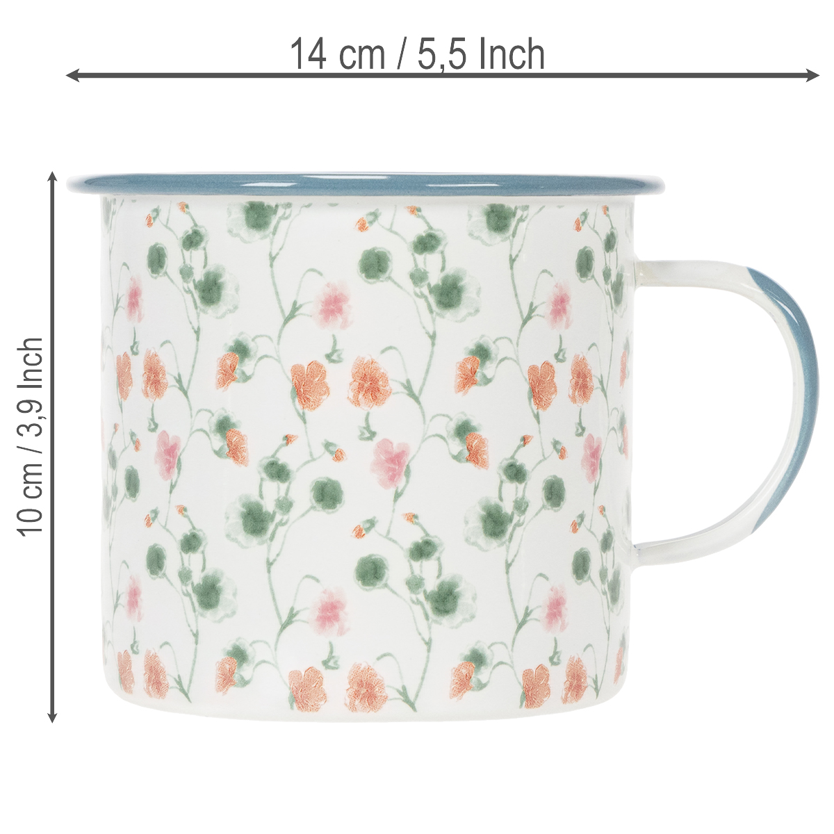 Emaliuotas augalų vazonas, dekoratyvinis puodelis su gėlių motyvais, Ø11 cm