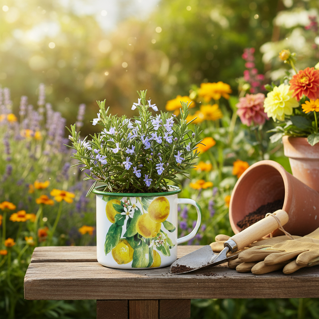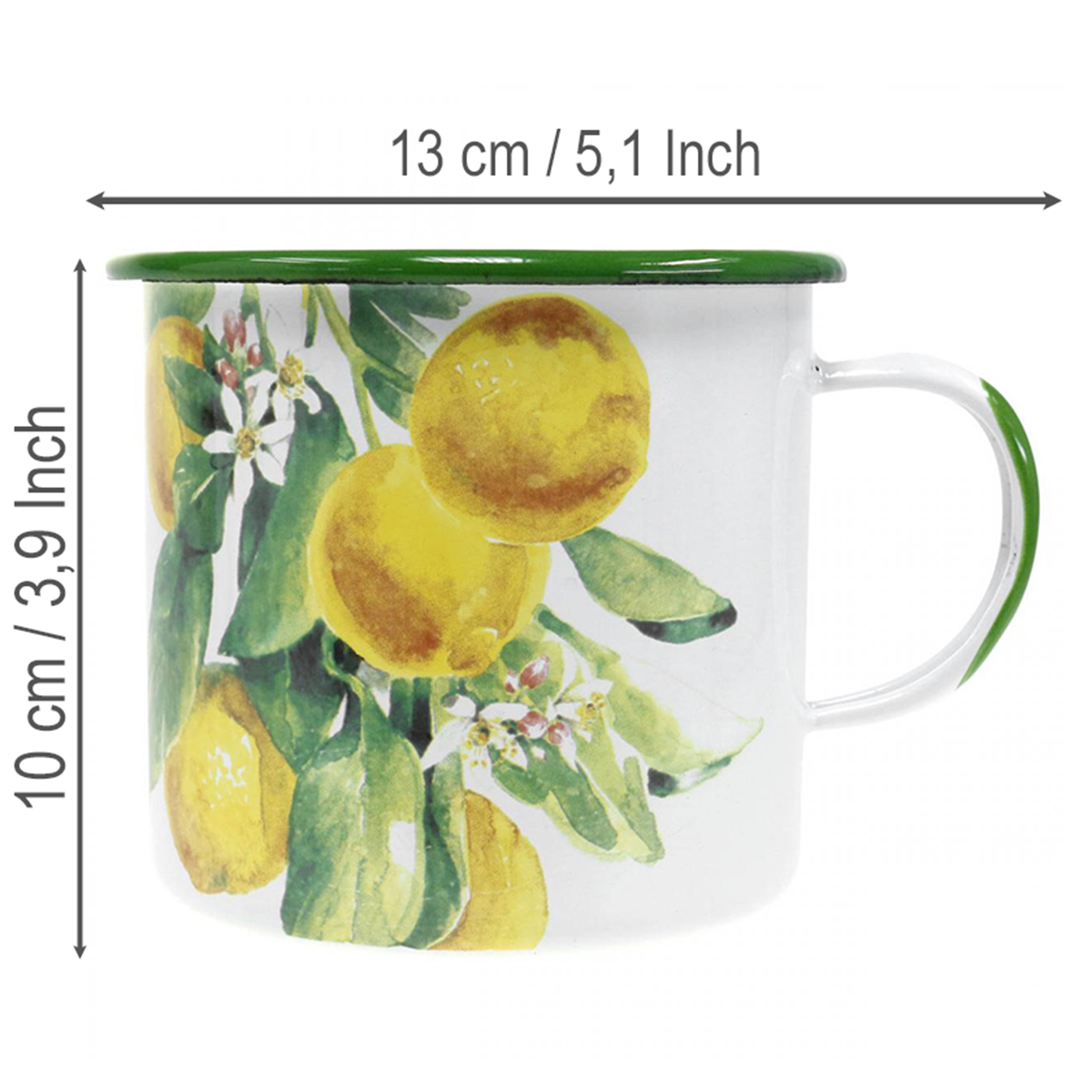 Emaliuotas augalų vazonas, dekoratyvinis vazonas su citrinos šakele, Viduržemio jūros stiliaus, Ø9,5 cm, aukštis 10 cm