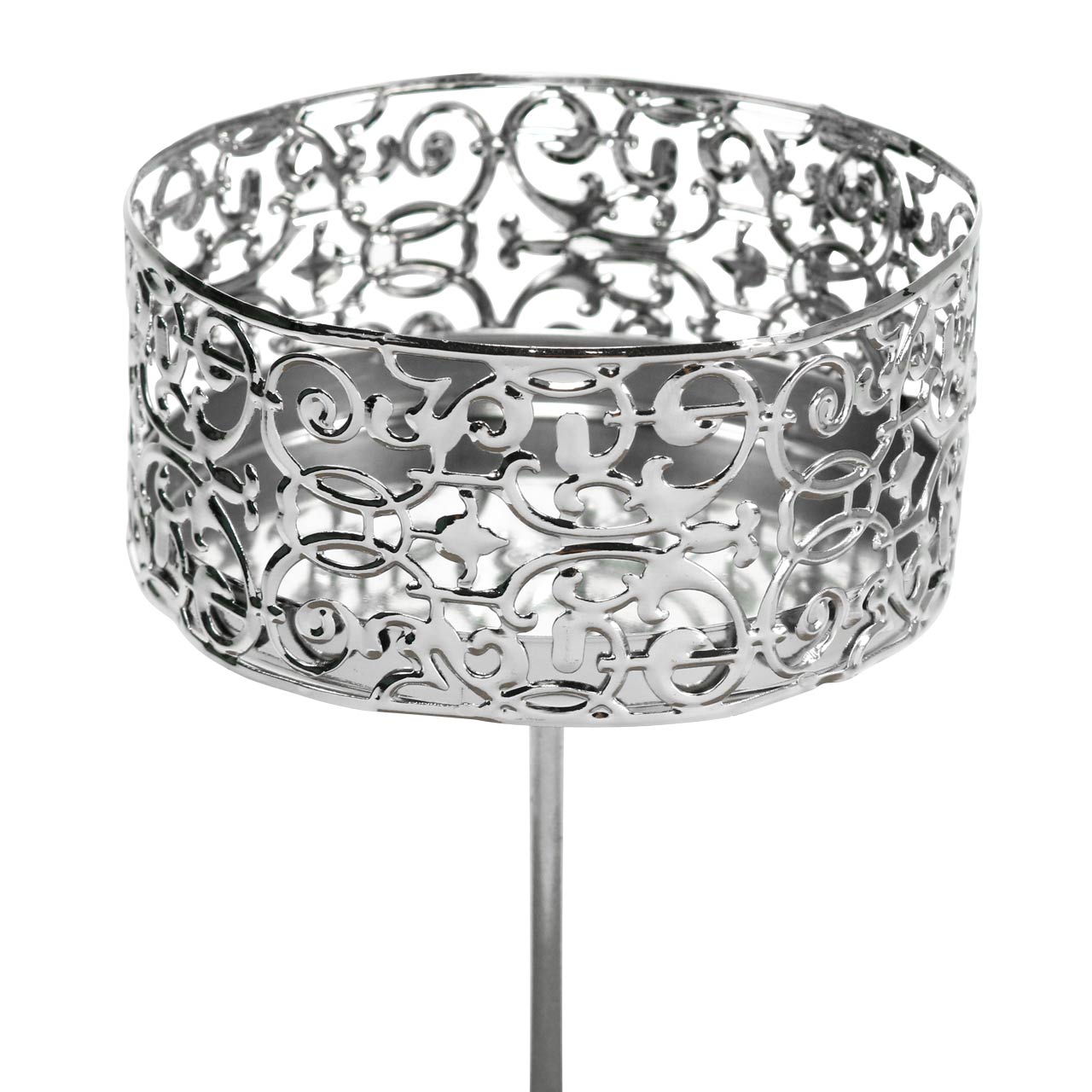 Keturias sidabro spalvos metalo žvakidėles su ilgu įtvaru patogiai įdėkite į polistirolą, šiaudų žiedą arba žemę. Gražios žvakidės kviečia kurti įvairius kūrybinius dekoracijų ir vainikų dizainus. Žvakidės ypač tiks kaip romantiška vestuvių puošmena ir papuošti artėjant Kalėdoms!
