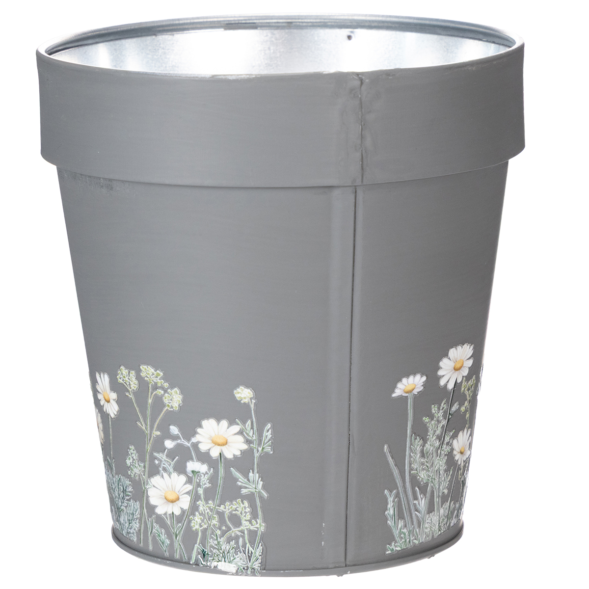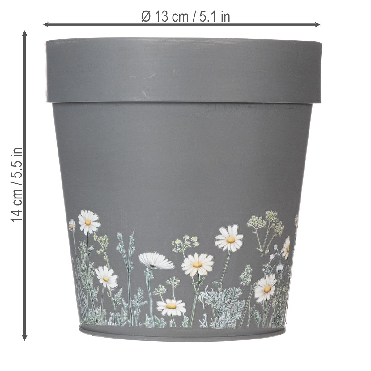 Šio elegantiško pilko gėlių vazono gėlių raštas suteikia bet kokiai aplinkai švarų, modernų akcentą. Įkvėptas skandinaviško interjero dizaino, šis vazonas žavi nuostabiu paprastumo ir dėmesio detalėms deriniu. Žavingi gėlių raštai yra nesenstantys ir sukuria harmoningą įvaizdį jūsų interjere. Pagamintas iš tvirto, bet lengvo metalo, gėlių vazonas yra patvarus; tačiau visiškas atsparumas rūdijimui negarantuojamas, kai naudojamas lauke arba liečiasi su vandeniu.
