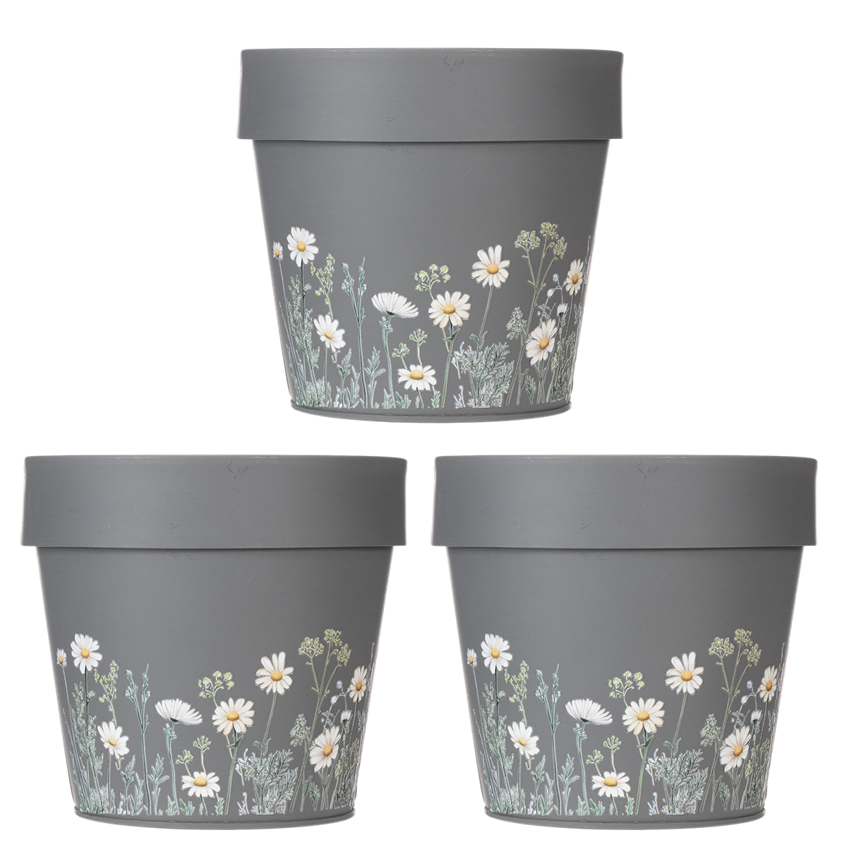 Gėlių vazonas su subtiliu laukinių gėlių raštu, praktiškas naudoti balkone ar terasoje, 15 cm, 3 vnt.