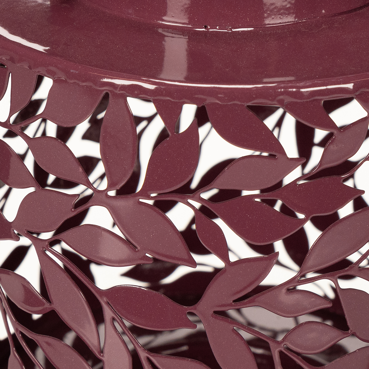 Tvirtas metalinis rėmas su subtiliu lapų raštu yra atsparus oro sąlygoms ir rūdims, todėl jis yra patikimas palydovas net lietingomis dienomis. Šilta raudona spalva suteikia elegancijos, o lapų dizainas – natūralumo pojūtį. Šis derinys puikiai dera prie Viduržemio jūros regiono stiliaus sodų arba natūralių baldų, tokių kaip mediena ar rotangas. Jis taip pat praktiškas – tvirta rankena leidžia jį akimirksniu perkelti.