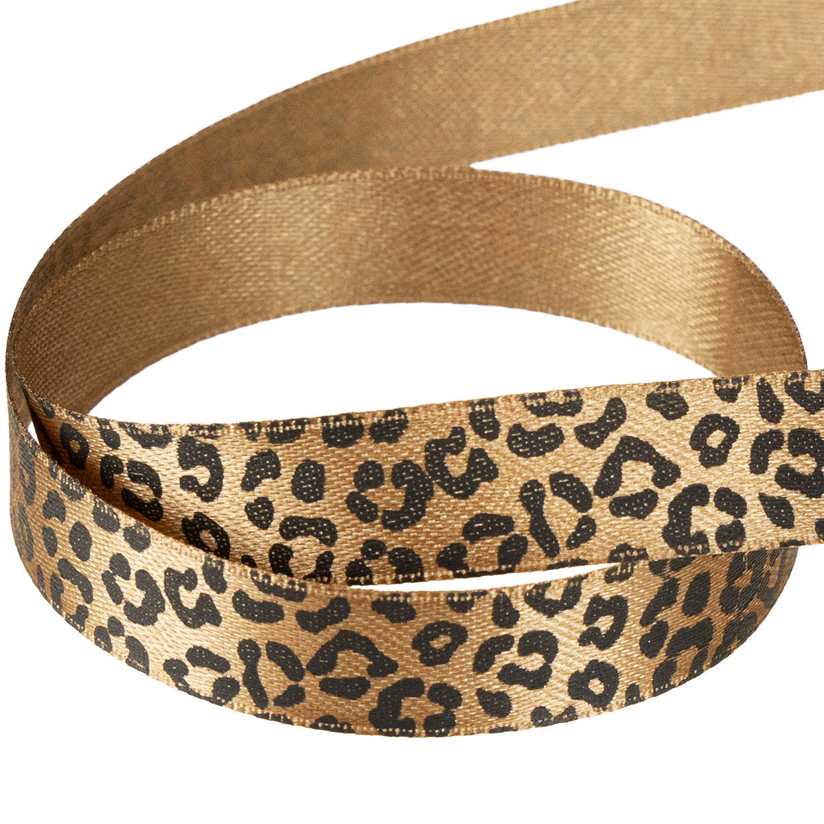 Produkto pavadinimas: Šilkinė juostelė su leopardo raštu, ruda ir juoda, 15 mm, 18 m