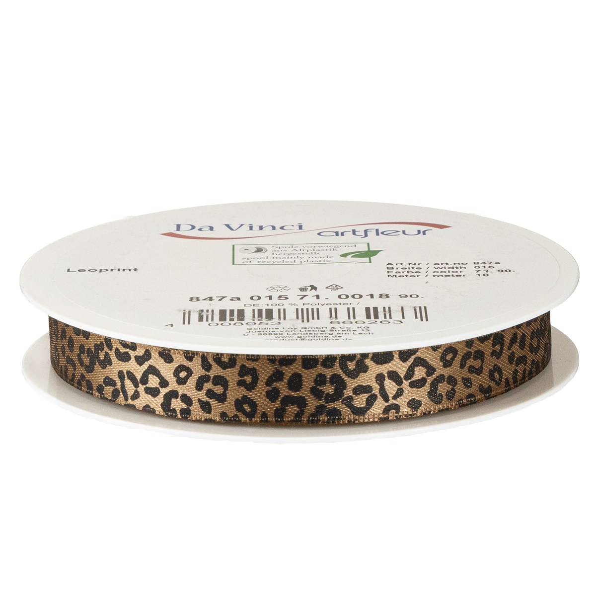 Šilkinė juostelė su leopardo raštu, ruda ir juoda, 15 mm, 18 m