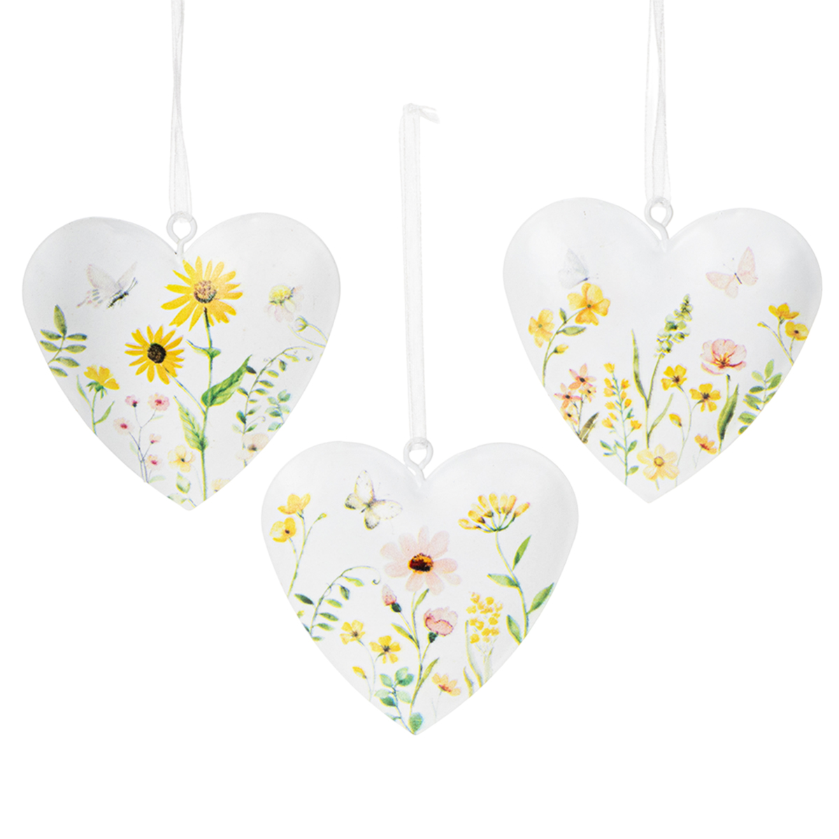 Širdelės formos pakabukai su gėlių raštais kaip sienų dekoracija, 7 cm, 6 vnt.
