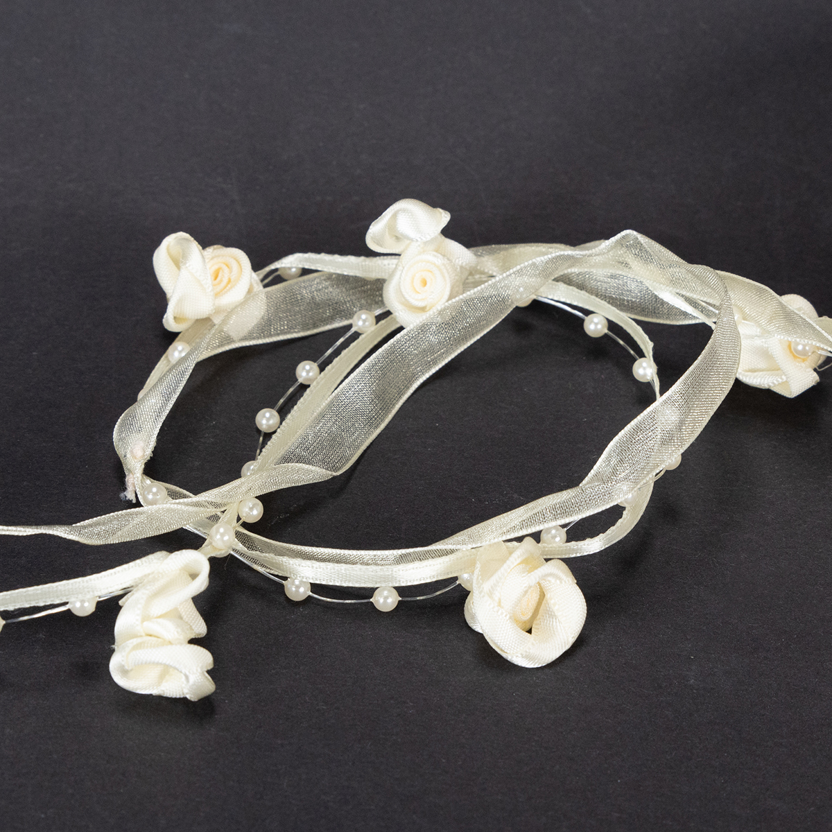 Kreminės spalvos Valentino juostelė yra apie 5 metrų ilgio ir apie 15 milimetrų pločio. Rožių skersmuo yra apie 2 centimetrus, o perlų galvučių skersmuo yra apie 0,4 milimetro.