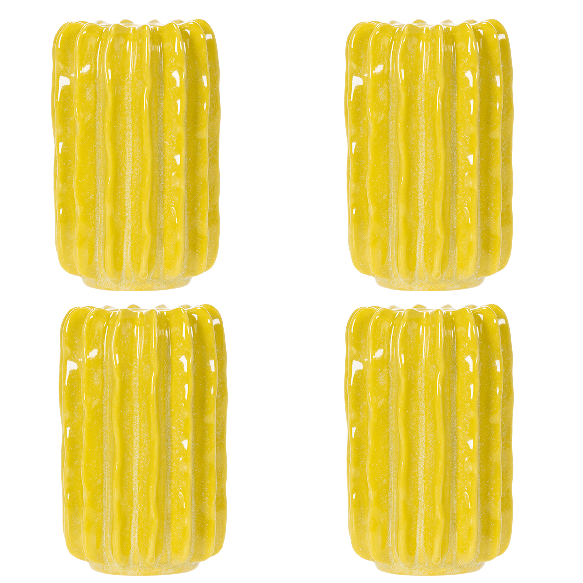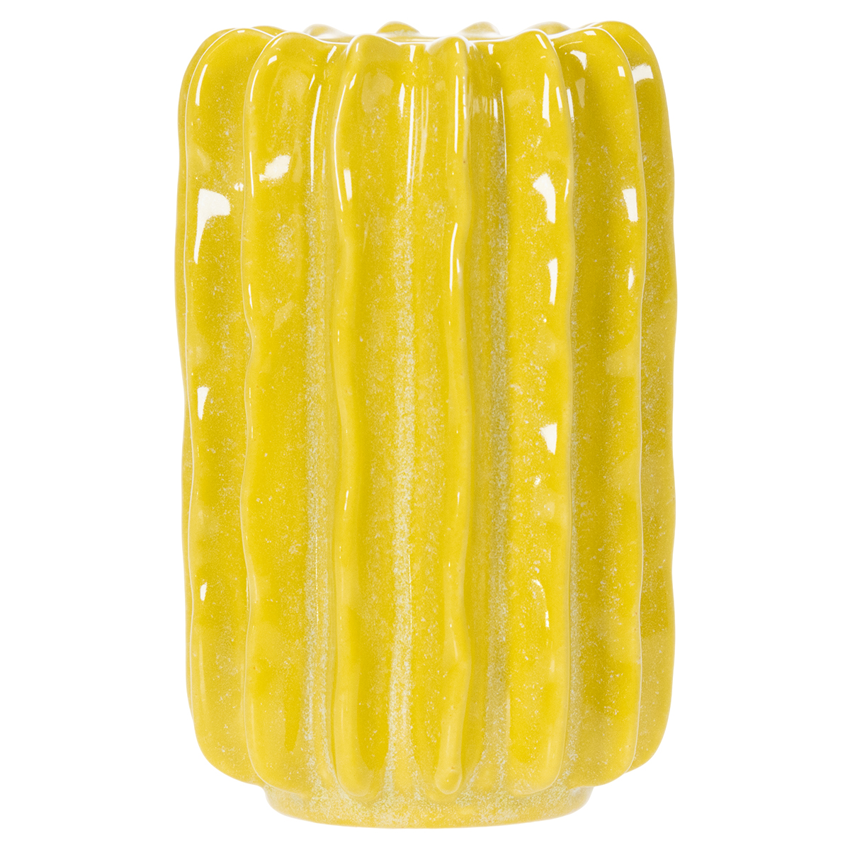 Geltona keraminė vaza su briaunuotu dizainu: universali ir praktiška