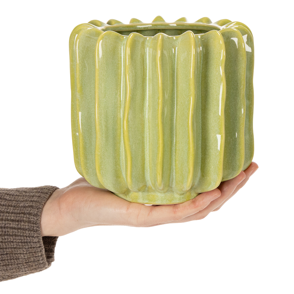 Aukštos kokybės keramika ir tekstūruotas, griovelių raštas šį vazoną paverčia ne tik praktišku, bet ir stilingu dekoratyviniu elementu. Jame yra daug vietos jūsų mėgstamiausiems augalams – kaktusams, sukulentams ar mažiems žalumynams. Nesvarbu, ar jūsų stilius bohemiškas, minimalistinis, ar urbanistinio stiliaus, šis dizainerio sukurtas gėlių vazonas papildys beveik bet kokį interjerą ir garantuotai pradės pokalbį.