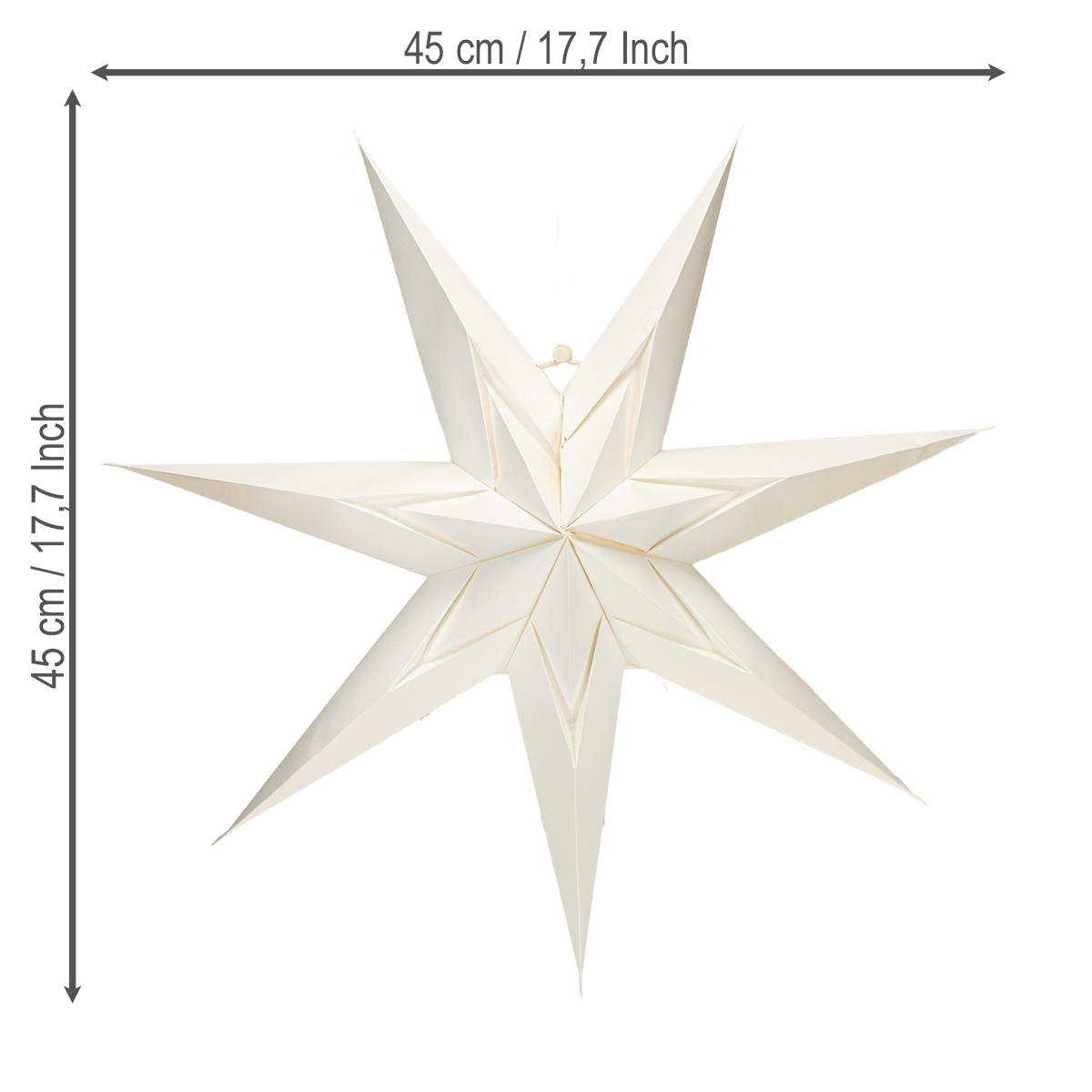 Vien 45 cm dydis daro juos akį traukiančius, o elegantiškas dizainas harmoningai dera prie įvairių stilių – nuo nesenstančio skandinaviško dizaino iki modernių kalėdinių dekoracijų. Ar jau turite idėją, kur galėtumėte pakabinti šias popierines žvaigždes savo namuose?