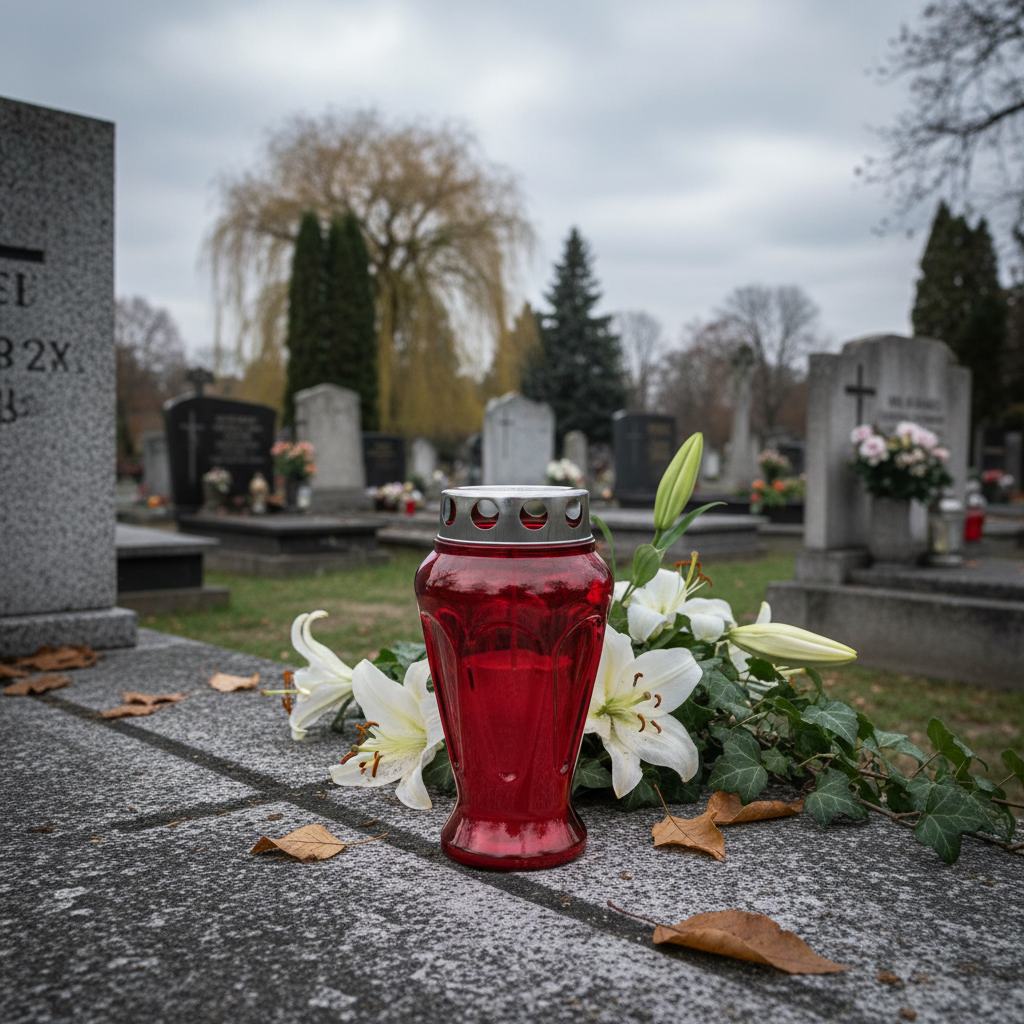 Mūsų kapų žvakės raudoni gedulo žibintų lašai Ø9cm H17cm 4 vnt. yra idealus pasirinkimas norint stilingai išreikšti atminimą ir gedulą. Šios elegantiškos raudonos žvakės yra ne tik puikus priedas prie bet kurios poilsio vietos, bet ir gilios užuojautos ženklas. Jie yra 17 cm aukščio ir 9 cm skersmens, todėl įspūdingai atrodo ir ilgai dega pagerbdami mirusių artimųjų atminimą. Švelniai blizgantis, matinis sidabrinis dangtelis su ornamentuotu gėlių raštu pabrėžia klasikinį, tačiau nesenstantį šių kapo žibintų stilių. Ašaros formos graviūra suteikia šioms žvakėms ypatingą simboliką, kuri primena vandens paviršių ir taip reprezentuoja gyvybės ratą. Šios gražios gedulo lemputės yra ne tik funkcionalios, bet ir dekoratyvios kapinių dizaino detalės, kurios atrodo ir tradicinės, ir modernios.