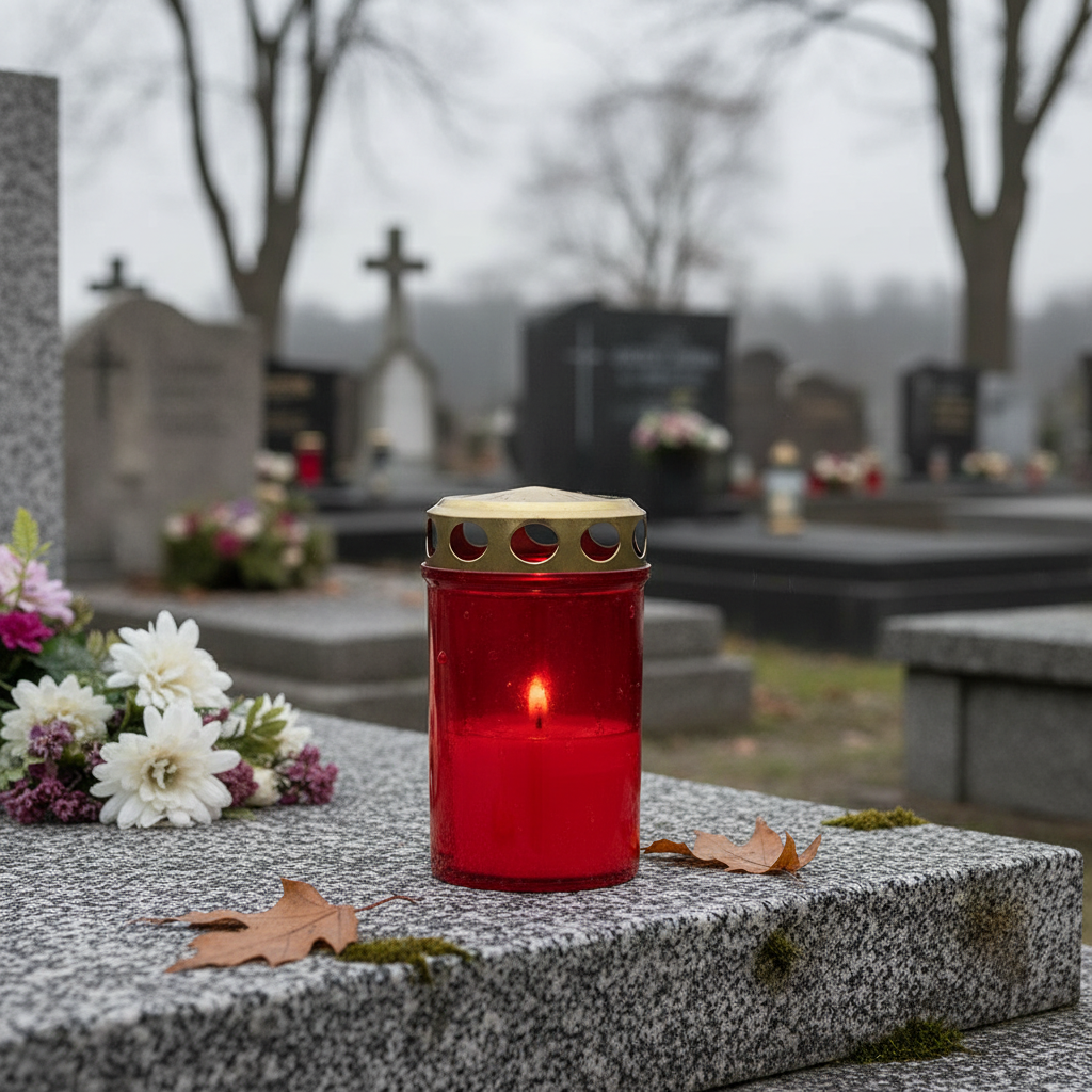 Žvakes taip pat galite panaudoti mirusiųjų sekmadieniui ir Vėlinėms ir taip išreikšti liūdesio jausmą. Žinoma, galite lengvai nuimti auksinį metalinį gedulo žvakių dangtelį, kad būtų sukurtas gedulo dizainas, kad žvakių šviesa atskleistų visą savo efektą ir būtų naudojama labai individualiam gedulo papuošalui. Užpildomos žvakės taip pat tinka kiekvienam kapo žibintui ir dėl paprastos konstrukcijos dera prie kiekvieno dizaino.