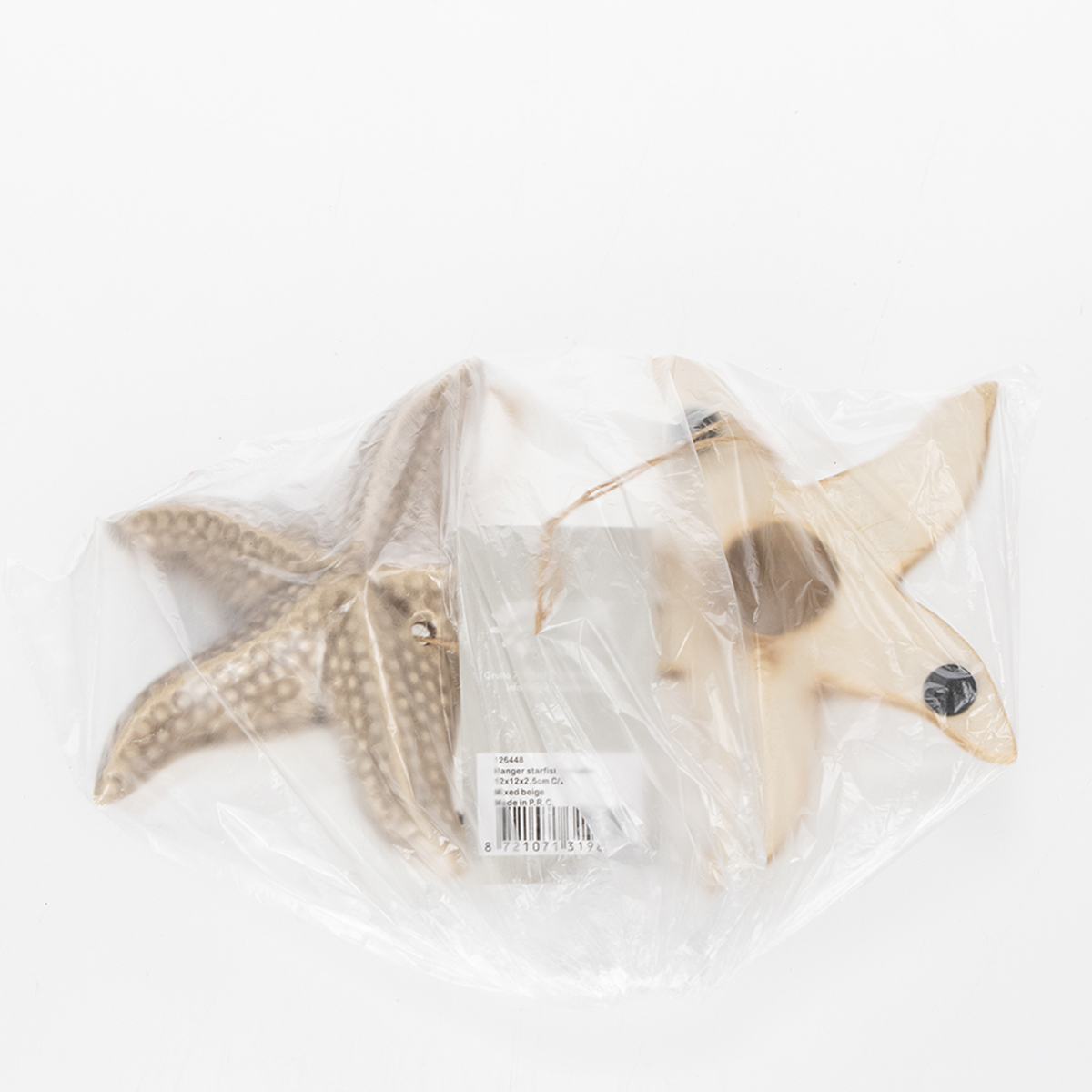 Produkto pavadinimas: Keraminė jūrų žvaigždės formos dekoracija pakabinimui, jūriniam žavesiui, vasariška namų puošmena, 12 cm, 2 vnt.