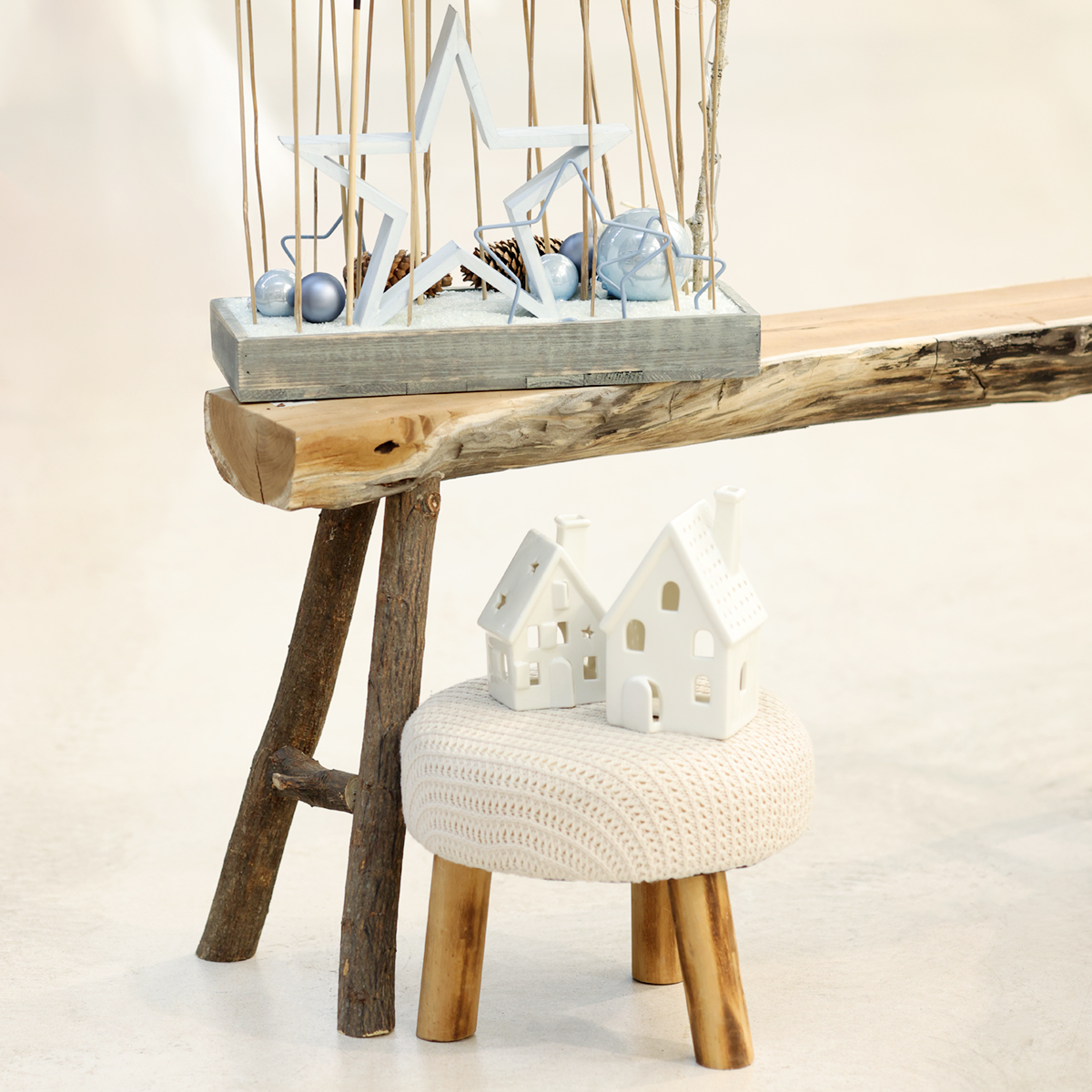 Dekoratyvinis žibintuvėlis dėl savo paprasto dizaino tinka tiek modernioms kalėdinėms dekoracijoms, tiek nostalgiško dizaino Advento stalui. Užtenka nedidelės arbatžolės, o keraminis namelis atrodo labai jaukiai. Žvakių šviesa šviečia iš visų dekoratyvinio namo langų ir leidžia ant stalo suspindėti mažoms, jaukioms lemputėms.