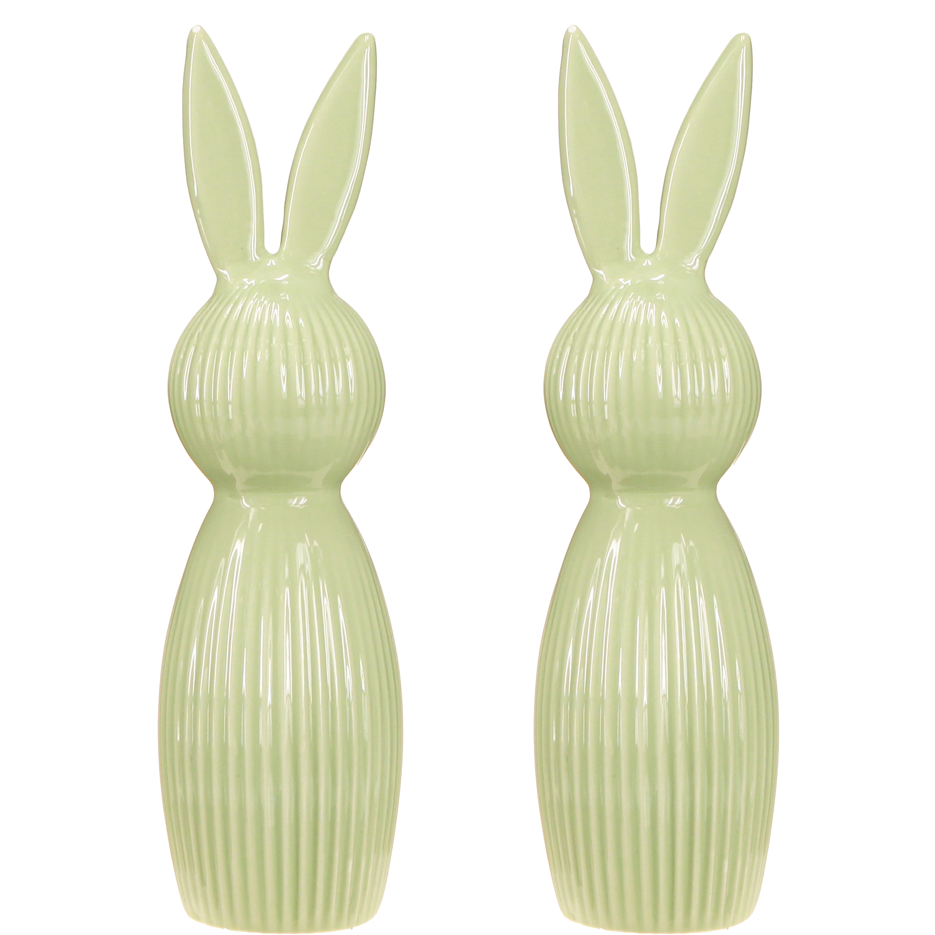 Produkto pavadinimas: Keraminė Velykų zuikučio figūrėlė pastelinės žalios spalvos, stalo dekoracija, 22 cm, 2 vnt.