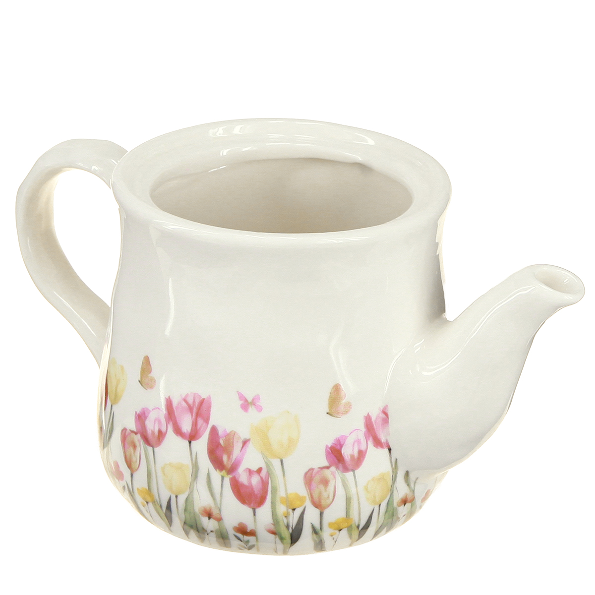 Keraminis ąsotis su gėlių motyvu pavasariškiems akcentams svetainėje 20 cm
