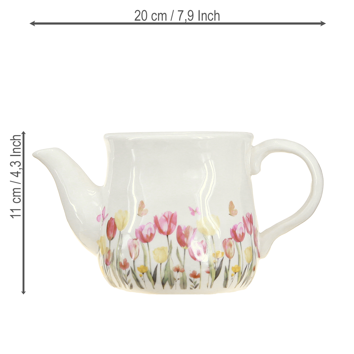 Ar kada nors patyrėte, kaip mažas dekoratyvinis elementas gali pakeisti visą kambario atmosferą? Mūsų keraminis ąsotis su gėlių motyvu yra tikras akcentas! Šis žavus ąsotis iš pirmo žvilgsnio suteikia jūsų namams pavasario gaivumo. 11 cm aukščio ir 20 cm ilgio jis puikiai tinka ant valgomojo stalo, lentynos ar palangės. Meiliai sukurtas gėlių motyvas – švelnių, ryškių spalvų baltame keraminiame fone – spinduliuoja grynu lengvumu. Estetikos ir funkcionalumo derinys paverčia jį tikru universaliu daiktu.