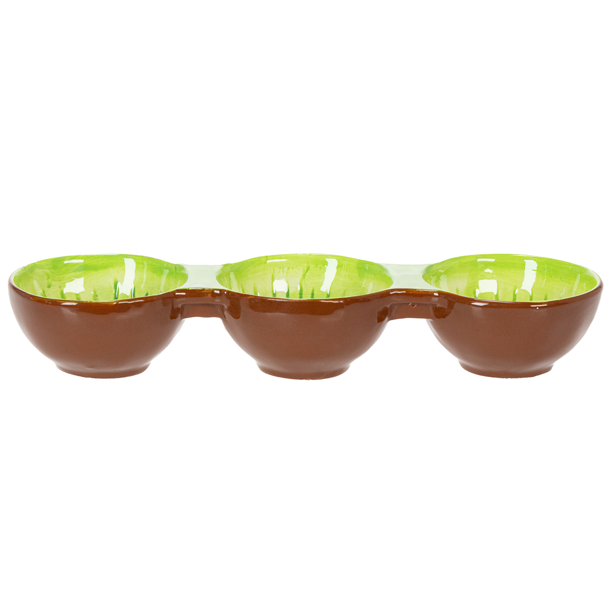 - Trijų dalių dizainas su atskirais dubenėliais – idealiai tinka tapas, užkandžiams ir padažams.