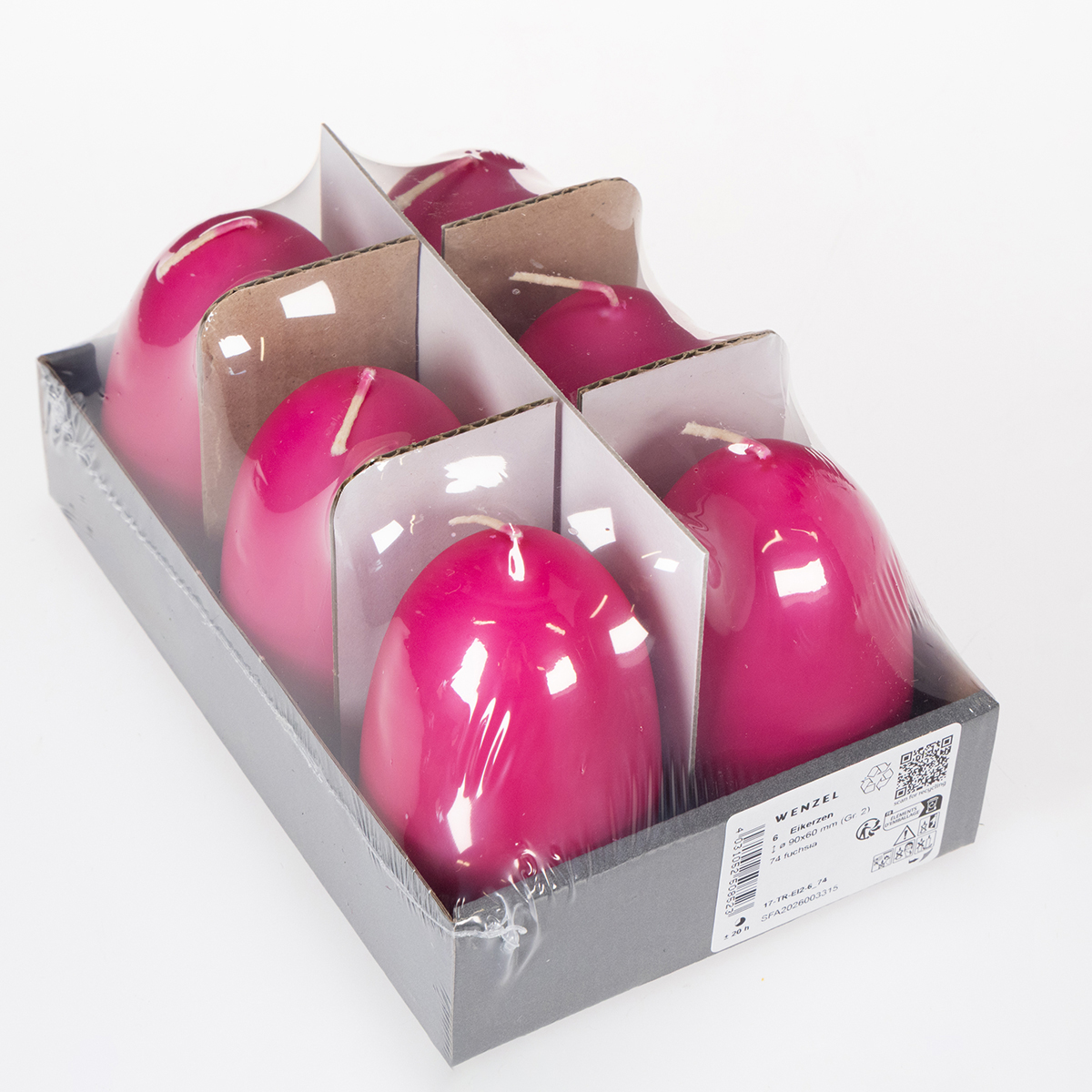 Ši rožinė kiaušinio formos žvakė derina gaivius spalvų akcentus su aukštos kokybės meistriškumu. 9 centimetrų aukščio ir 6 centimetrų skersmens, ji puikiai tinka pavasariniam stalui. Šiltas švytėjimas sukuria natūralią, jaukią atmosferą, tačiau nėra pernelyg ryški. Nepaisant ryškios spalvos, žvakė nėra visiškai dažyta. Subtilus paviršiaus blizgesys suteikia jai modernaus elegancijos, kuri dera prie beveik bet kokio interjero stiliaus. Nesvarbu, ar jums labiau patinka minimalistinis skandinaviškas stilius, ar kažkas žaismingesnio, ši rožinė velykinio kiaušinio formos žvakė pridės spalvų purslų neprarandant nesenstančio įvaizdžio. Norėdami sukurti ypač harmoningą vaizdą, derinkite žvakę su pastelinių spalvų servetėlėmis, šviežiomis gėlėmis, pavyzdžiui, hiacintais, arba mažomis velykinėmis figūrėlėmis. Patarimas: mūsų kiaušinio formos žvakė taip pat puikiai dera su sidabriniais arba baltais dekoratyviniais elementais, suteikdama gaivumo paprastesnėms kompozicijoms. Ypač patogi savybė: pakuotėje yra šešios žvakės, todėl dar didesnės dekoracijos bus lengvai pagaminamos!