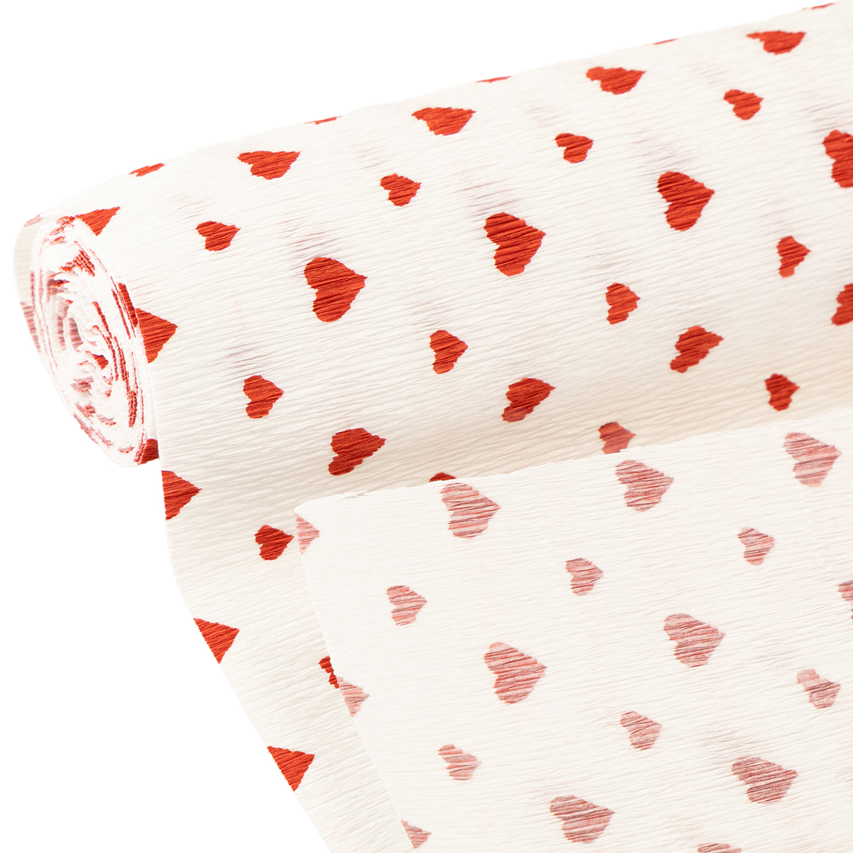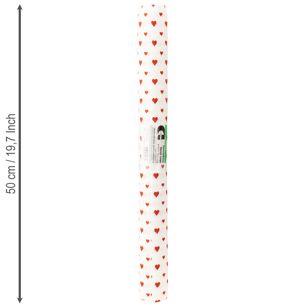 Krepinis popierius su širdelėmis Floristo krepinis popierius Motinos dienai raudonas, baltas 50×250cm