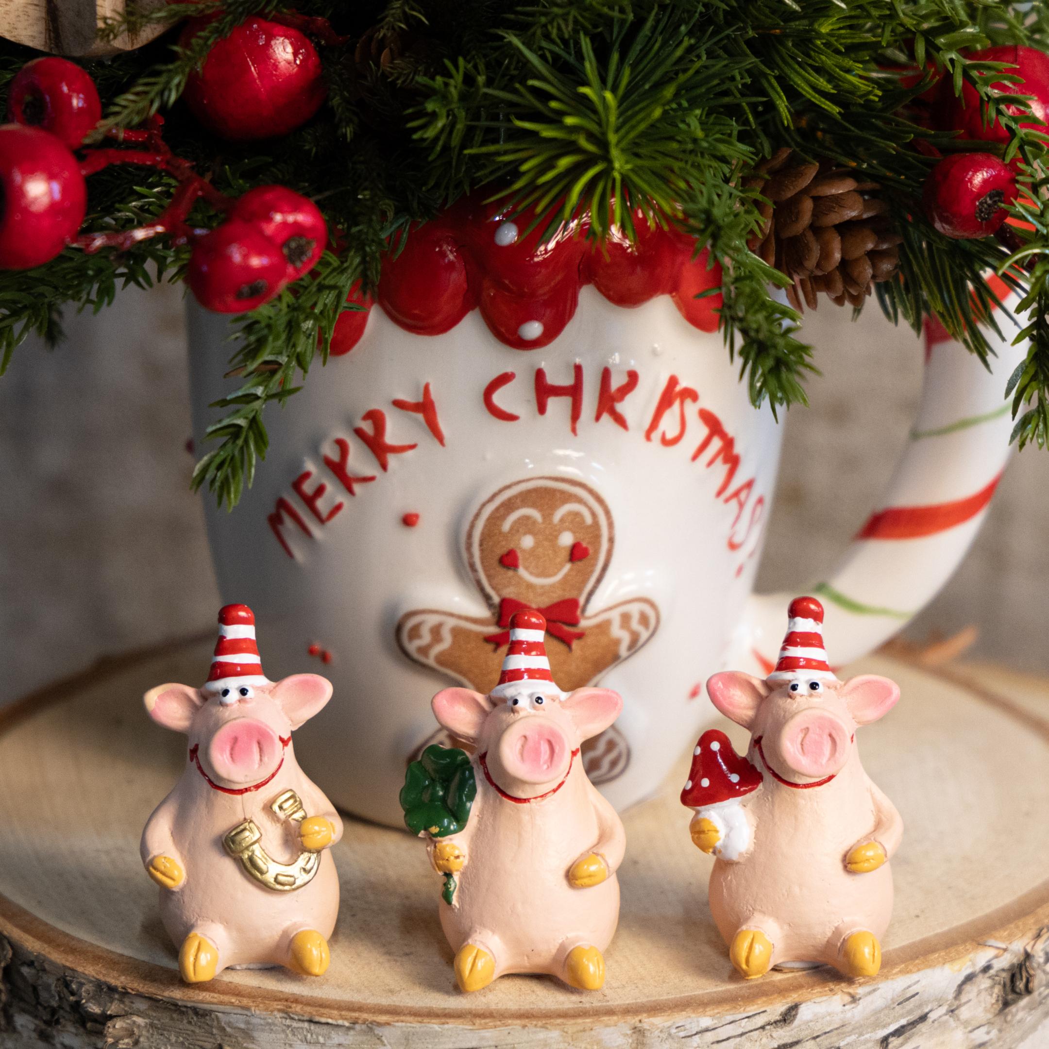Na, o kam gi sėkmė? Šios žavios dekoratyvinės laimės kiaulytės privers nusišypsoti kiekvieno veide. Ir, tiesą sakant, kam gali būti per daug sėkmės? Ypač kai ji taip gražiai supakuota! Šios laimės kiaulytės yra daugiau nei tiesiog mielos dekoracijos – jos laimės ir gyvenimo džiaugsmo simbolis. Nesvarbu, ar tai stalo puošmena, maža dovanėlė ar suvenyras – šios mažos kiaulytės visada pakelia nuotaiką. Nesvarbu, ar tai metų pabaigos šventė dideliam Naujųjų metų vakarėliui, ar kaip kasdienis sėkmės talismanas ant jūsų stalo, šios dekoratyvinės kiaulytės visada pasiruošusios suteikti linksmumo. Argi tai ne vyšnaitė ant torto bet kuriai šventei?