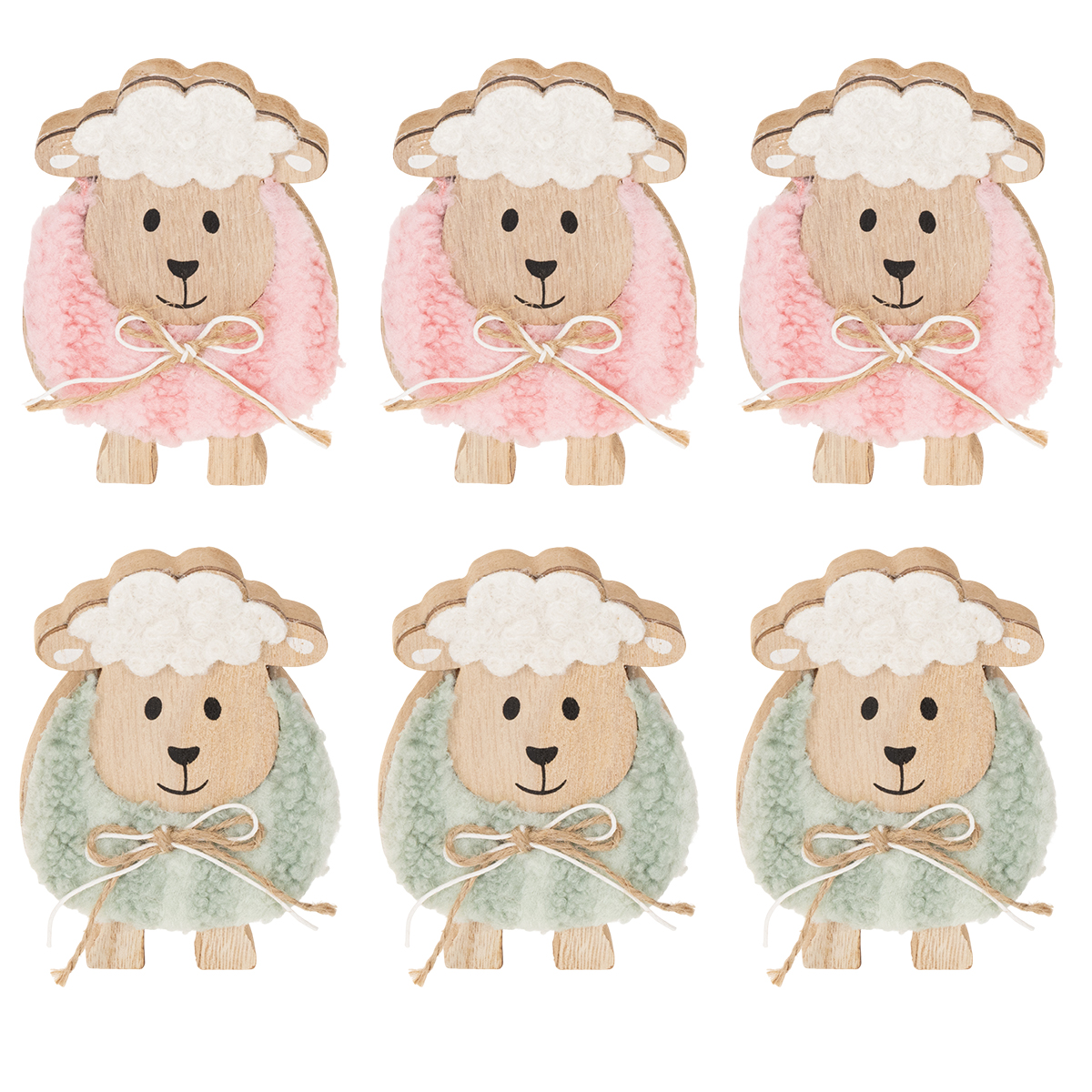 Šiltumo ir išmanaus kaimiško bei jaukaus skandinaviško stiliaus derinio dėka šios dekoratyvinės figūrėlės puikiai dera su bet kokiu interjeru. Avys pagamintos iš aukštos kokybės medienos, o dėl kompaktiško dydžio jas galima lengvai integruoti į esamą interjerą. Ypač verta dėmesio rausvos ir žalios spalvų derinys, spinduliuojantis gaivumą ir linksmumą. Šios figūrėlės idealiai tinka norint pridėti nesenstančių akcentų, tačiau neperžengti ribų. Ieškote pavasarinio dekoro akcento? Šis šešių figūrėlių rinkinys sukuria harmoningą atmosferą bet kuriame kambaryje. Įrėmintos šviežiomis gėlėmis, ant Velykų stalo ar kaip mažas sveikinimas ant šoninio staliuko – galimybės neribotos! Norėdami suteikti asmeniškumo, derinkite avys su samanomis, mažais kiaušiniais ar miniatiūriniais žiedais. Jei norite darnaus ir suderinto vaizdo, šias dekoracijas galima puikiai papildyti kitomis medinėmis figūrėlėmis – galbūt panašaus dizaino triušiais ar viščiukais? Floristikos entuziastai ras daugybę kūrybingų dekoravimo variantų namams, balkonams ar net mažiems renginiams.