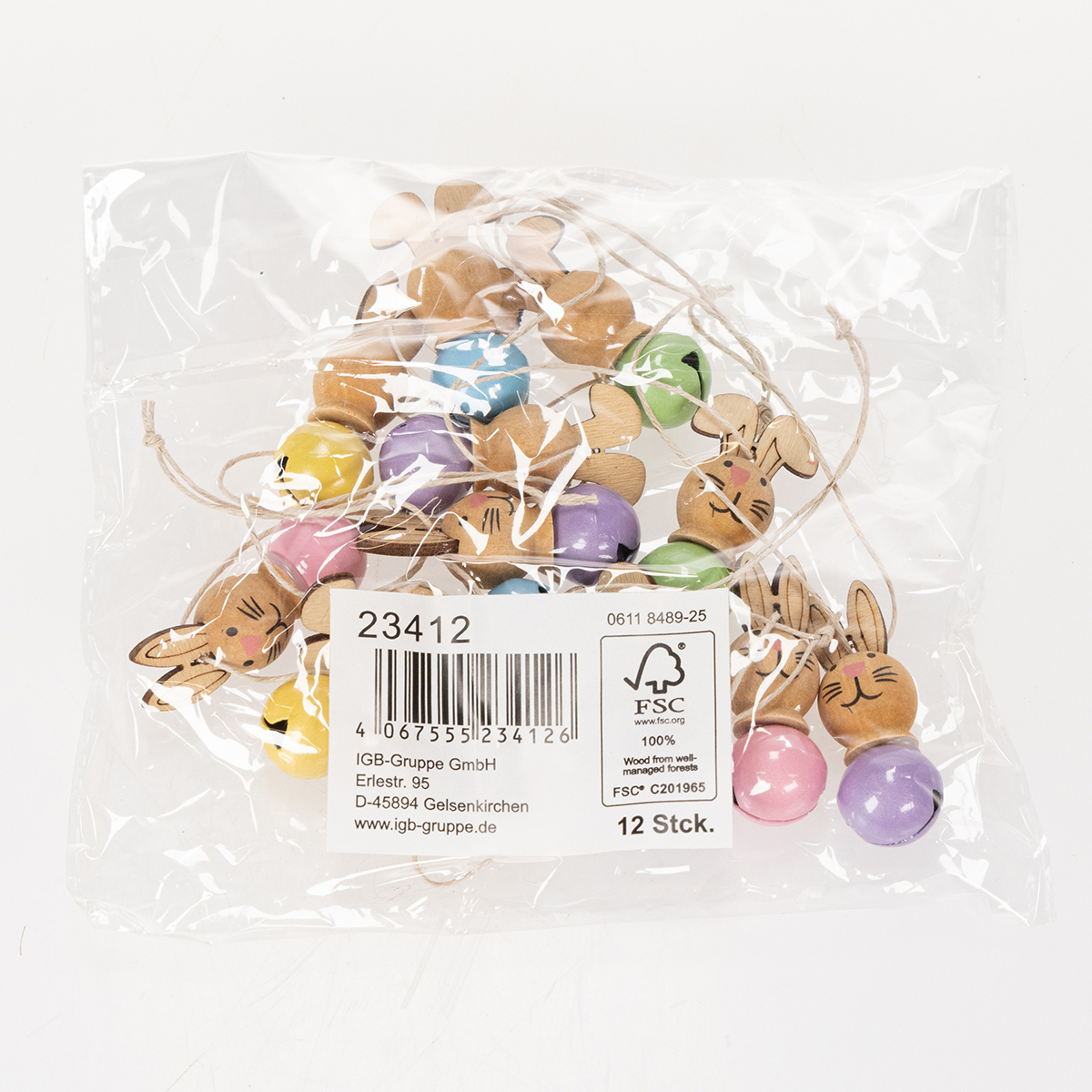 Mūsų dekoratyviniai zuikučių formos pakabukai derina žavų dizainą su įvairiomis dekoravimo galimybėmis. Kiekvienas iš dvylikos pakabukų yra pagamintas iš aukštos kokybės medienos ir yra maždaug 4 cm dydžio – idealaus dydžio, kad lengvai tilptų bet kuriame kambaryje. Zuikių veidai sukurti labai kruopščiai: maža nosytė, linksmos akys ir subtilios linijos – tiesiog žavingi! Žavus akcentas – maži spalvoti metaliniai varpeliai, penkių pastelinių atspalvių. Jie suteikia žaismingą akcentą ir skleidžia švelnų skambėjimą vos vos pajudėjus.