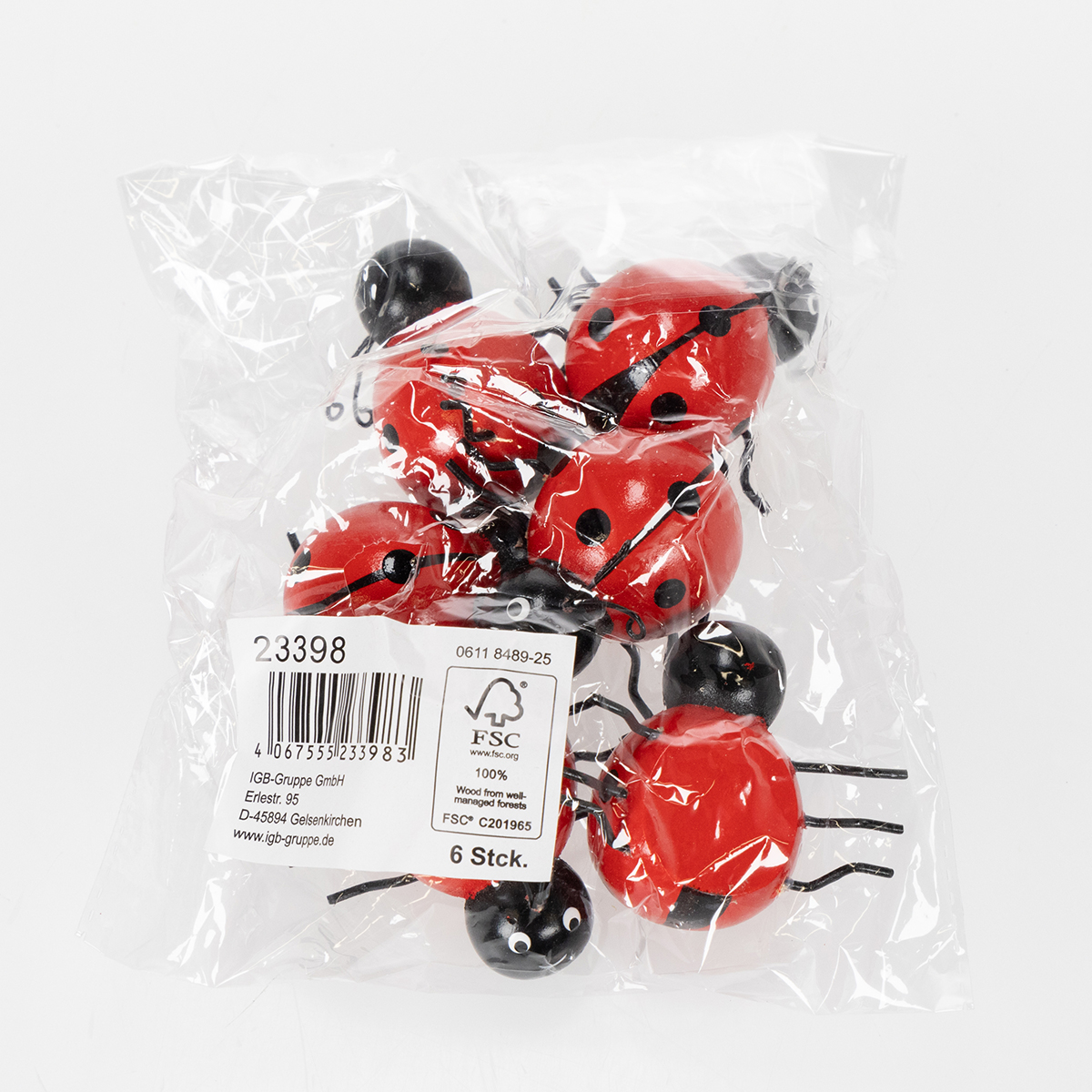 Medinės boružėlės/laimę nešančios blakės kaip mielos namų dekoracijos, 5 cm, 6 vnt.