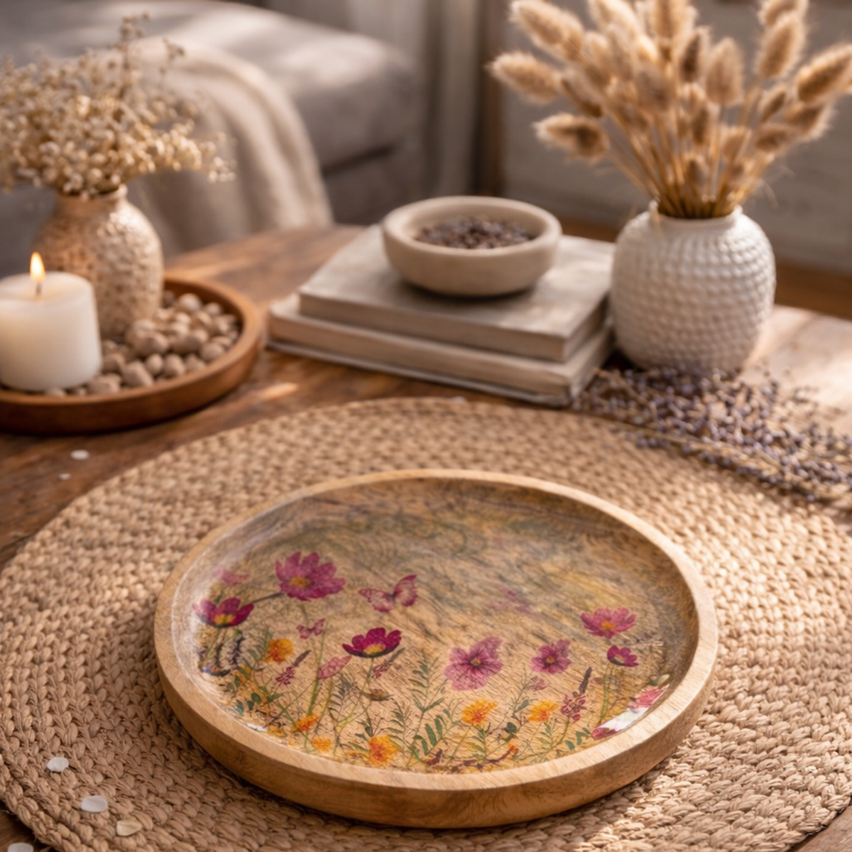 - Kokybiškos medinės lėkštės su gėlių ir drugelio motyvais