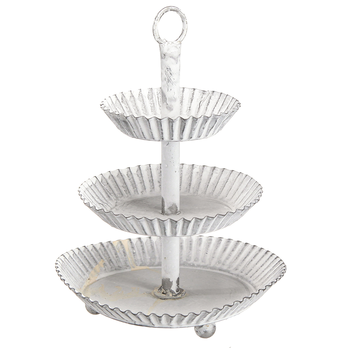 Šis nedidelis tortų stovas yra daugiau nei vien pakopinis padėklas. Nuo privataus kavos vakarėlio iki prabangių vakarėlio dekoracijų ir stilingų virtuvės dekoracijų – šis baltai išplautas metalinis tortų stovas tikrai traukia akį. Baltos spalvos metaliniai apvalkalai su dirbtinėmis dilimo žymėmis ir mažos apvalios kojelės suteikia metalo apdailai autentišką vintažinį vaizdą, kuris ypač efektyvus skurdus prašmatniame stiliuje.