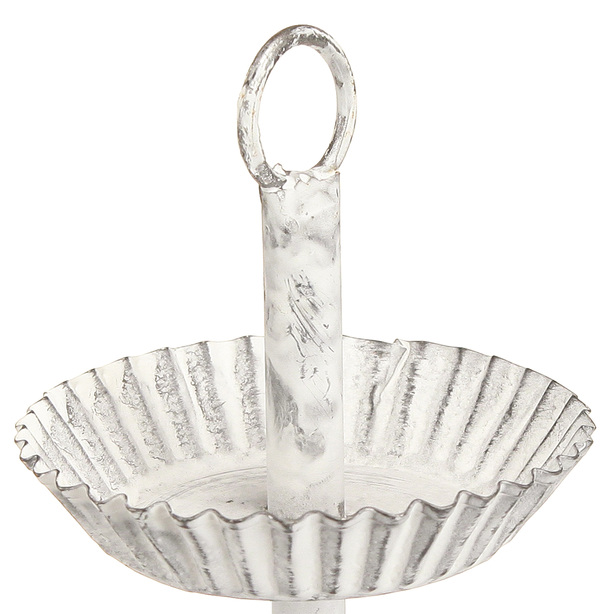 Užburkite svečius žaviu savo brangakmenių pristatymu. Šis trijų lygių balto metalo etageras sujungia funkcionalumą su nostalgija. Mažas apvalus dėklas puikiai tiks floristams, dekoratoriams ir visiems „pasidaryk pats“ entuziastams, kurie nori praturtinti savo kambarius žaviomis vintažinio stiliaus detalėmis.