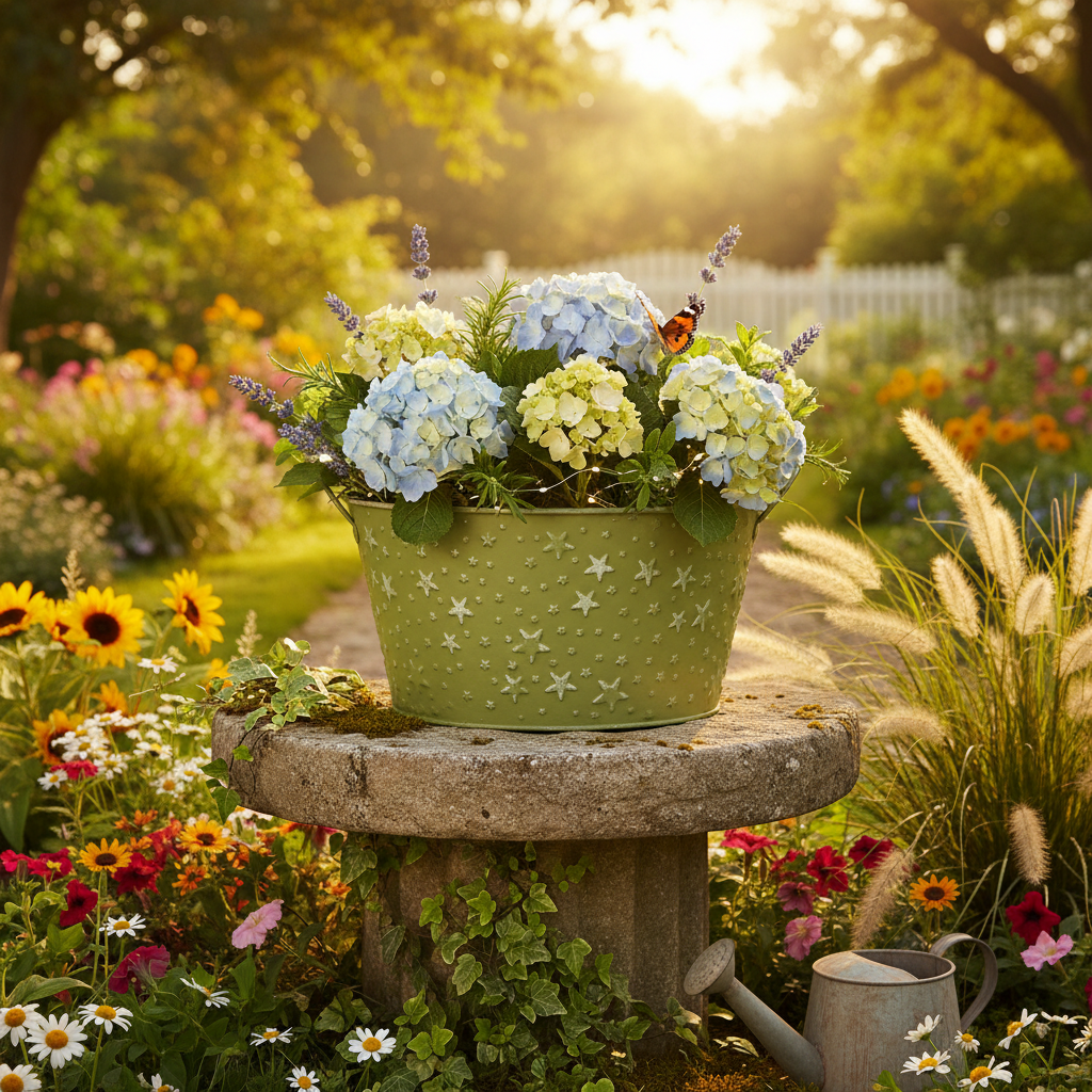 - Daugiafunkcinis naudojimas kaip dekoratyvinis metalinis dubuo ar sodinukas