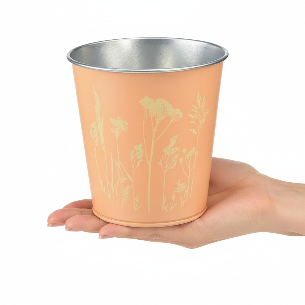 Metalinis gėlių vazonas, persikų geltonumo, Ø11,5 cm, aukštis 11,5 cm
