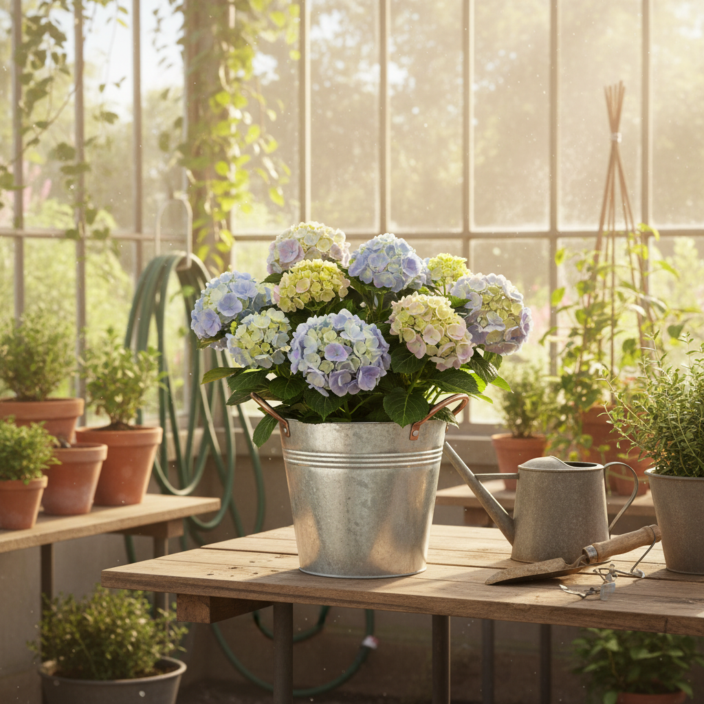 Šio mažo metalinio kibiro vario spalvos rankenos sukuria jaudinantį vizualinį kontrastą sidabro spalvos dekoratyviniam kibirui. Cinkuotas paviršius netgi suteikia sodintuvui šiek tiek nostalgišką išvaizdą. Prieš sodinant, metalinį indą patartina iškloti folija, kad kibiras būtų apsaugotas nuo korozijos.