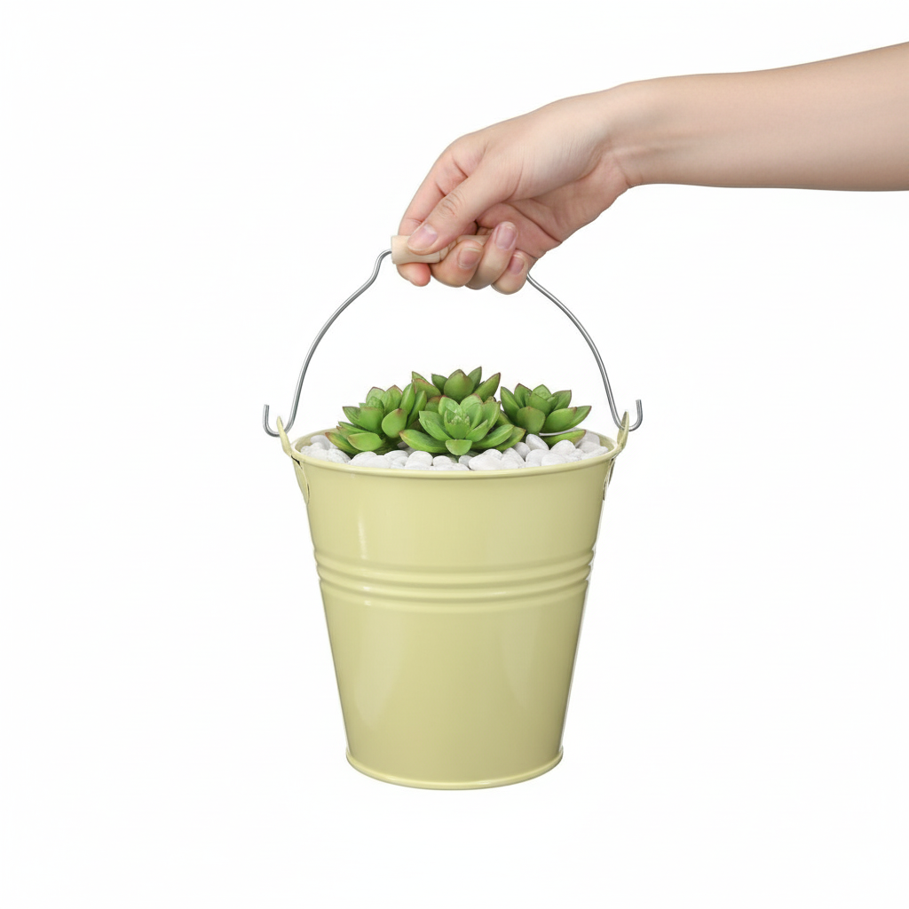 Suteikite savo svetainei ar sodui kaimo namų prašmatnumo su dekoratyviniu metaliniu kibiru kaip gaiviai žaliai geltonos spalvos gėlių vazonu. Šis universalus gėlių vazonas ne tik traukia akį, bet ir siūlo daugybę galimų panaudojimo būdų kūrybingiems protams ir „pasidaryk pats“ entuziastams.