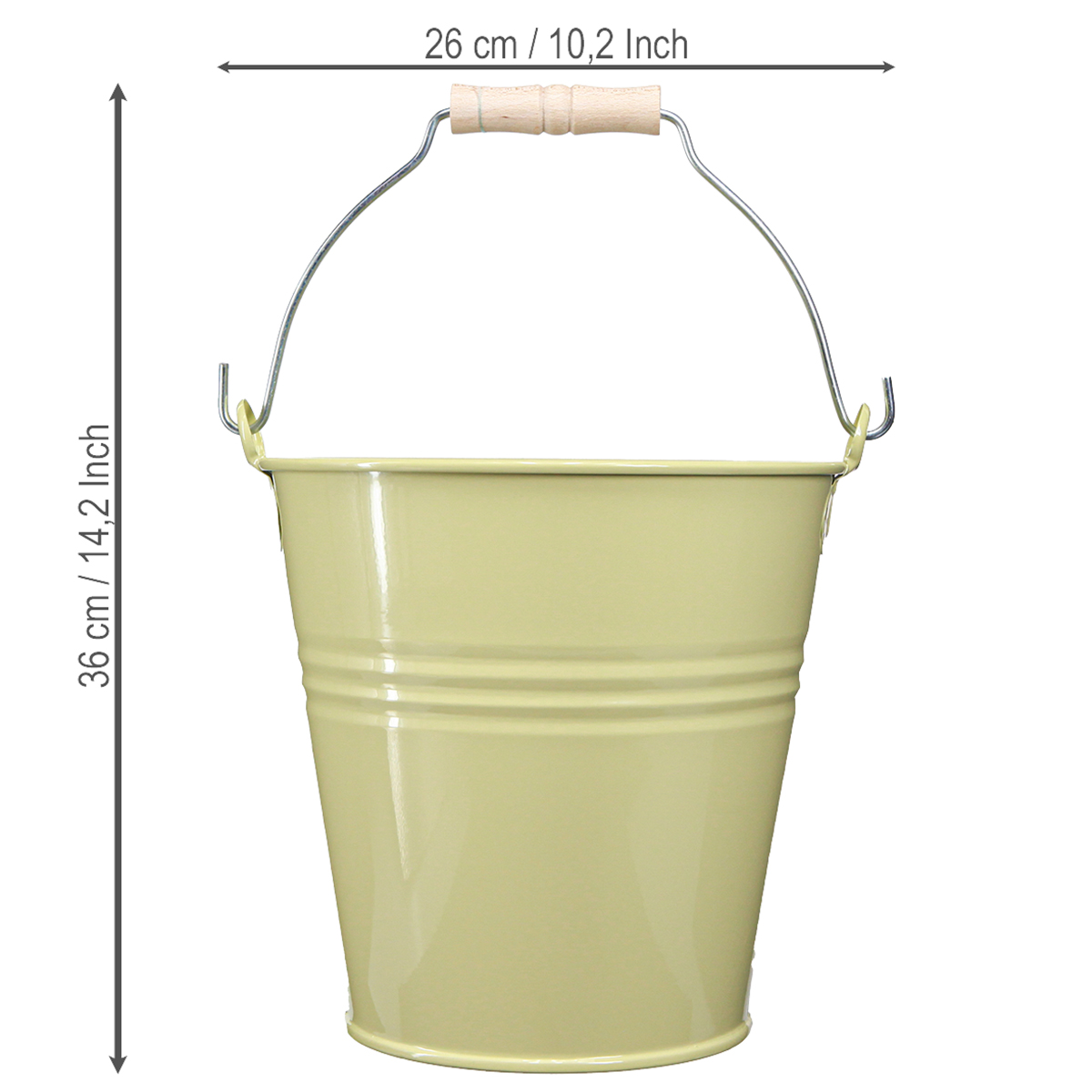 Maždaug 26 cm × 22,5 cm × 23 cm dydžio metalinė sėjamoji suteikia pakankamai vietos gėlių kompozicijoms ar smulkiems sodo įrankiams. Nesvarbu, ar svetainėje, balkone ar žiemos sode – metalinis kibiras gali būti naudojamas lanksčiai ir tampa bet kokios dekoracijos akcentu. Norėdami naudoti gaminį kaip gėlių vazoną, pirmiausia išklokite jį folija ir naudokite žvyrą arba keramzitą, kad užtikrintumėte pakankamą drenažą ir optimaliai prižiūrėtumėte savo augalus.