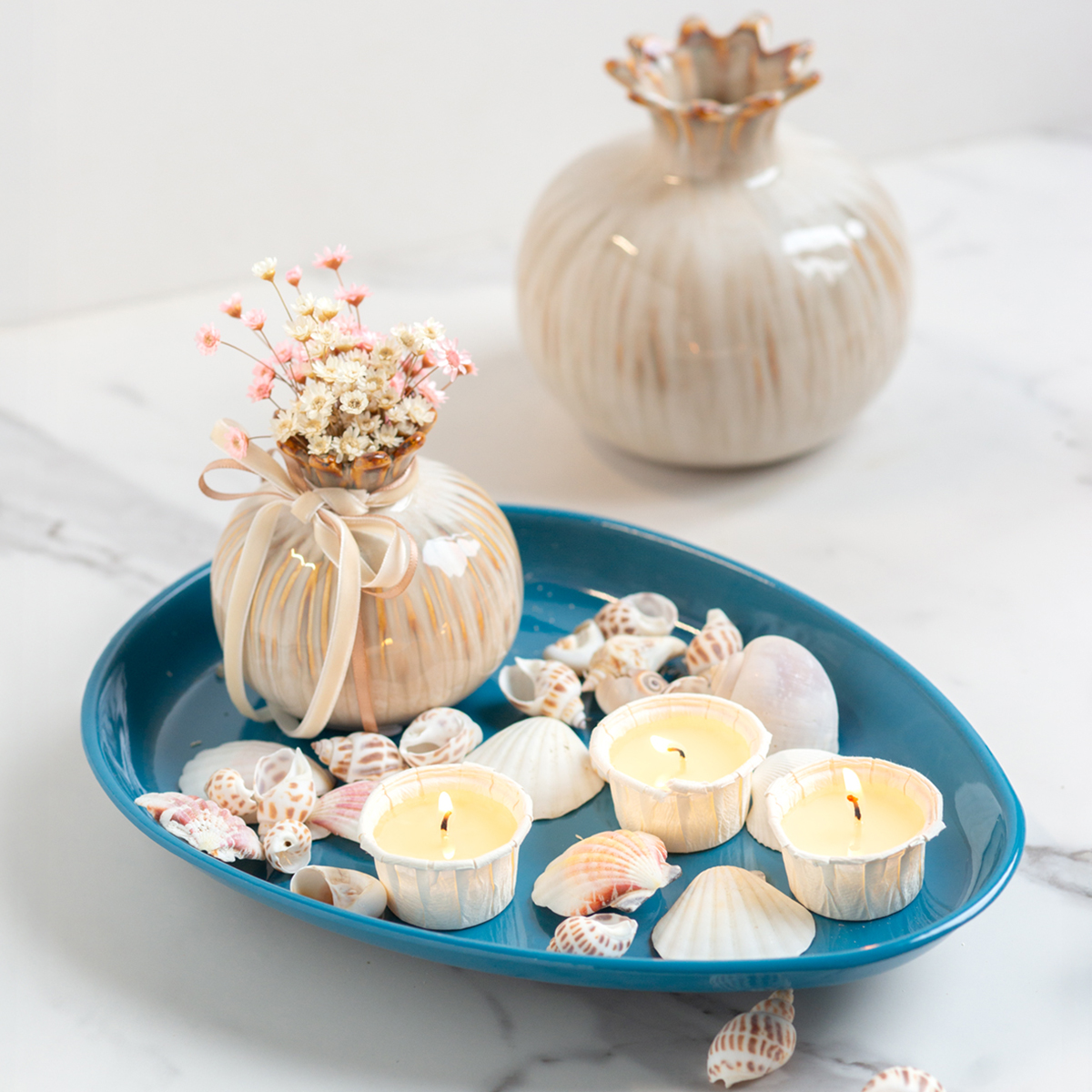 Šis mėlynas metalinis dekoratyvinis dubuo žavi savo švariomis linijomis ir šiuolaikišku dizainu. 28 centimetrų skersmens jis puikiai tinka ant valgomojo, kavos ar šoninių staliukų. Tvirtas metalinis korpusas suteikia dubeniui stabilumo ir aukštos kokybės pojūtį, todėl jis yra ne tik elegantiškas, bet ir patvarus. Mėlynas lakas žėri priklausomai nuo šviesos, suteikdamas kambariui gaivumo ir jaukumo. Šis stalo dubuo puikiai dera su skandinaviško interjero dizaino tendencijomis, bet taip pat sklandžiai dera su minimalistiniu, moderniu ar net Viduržemio jūros regiono stiliumi.
