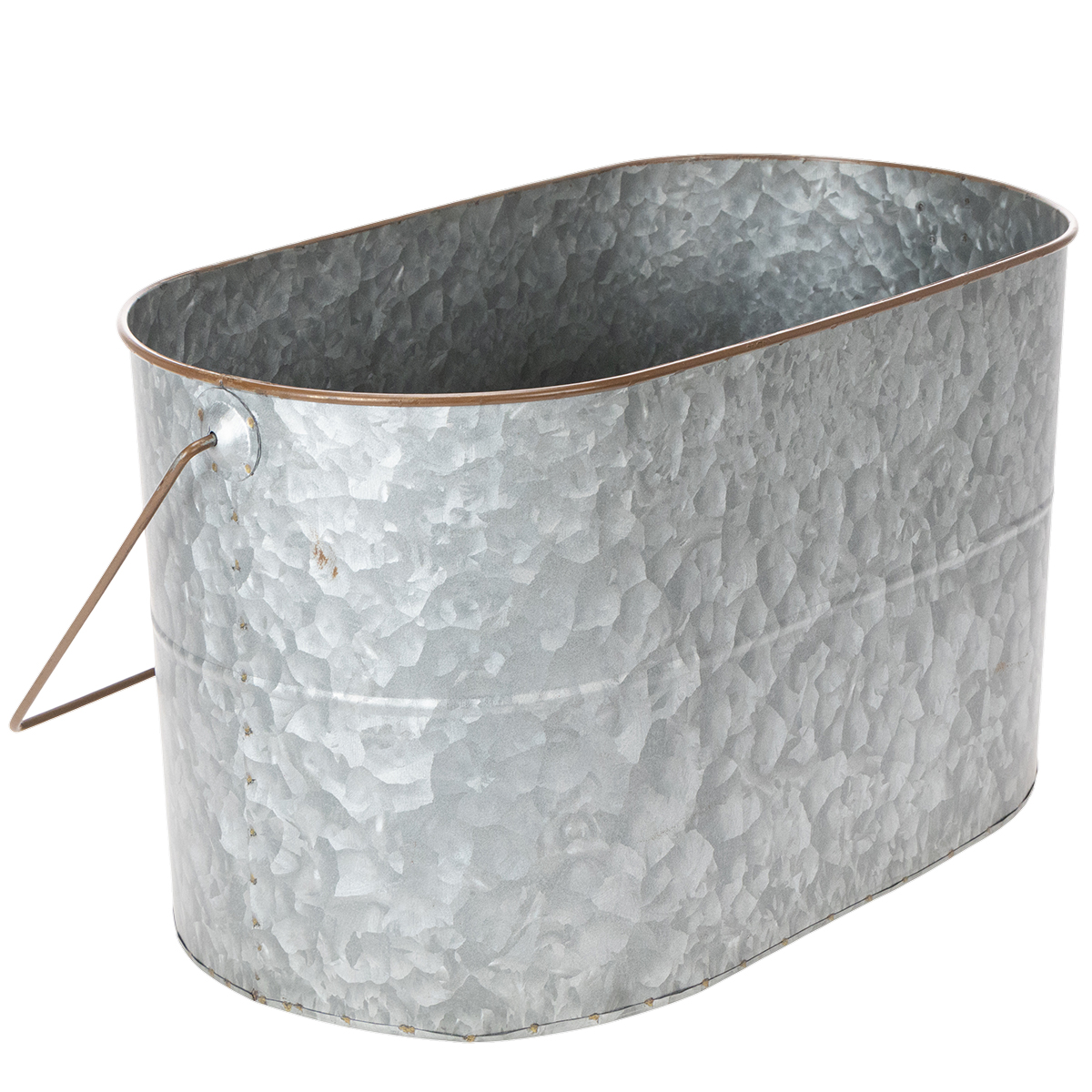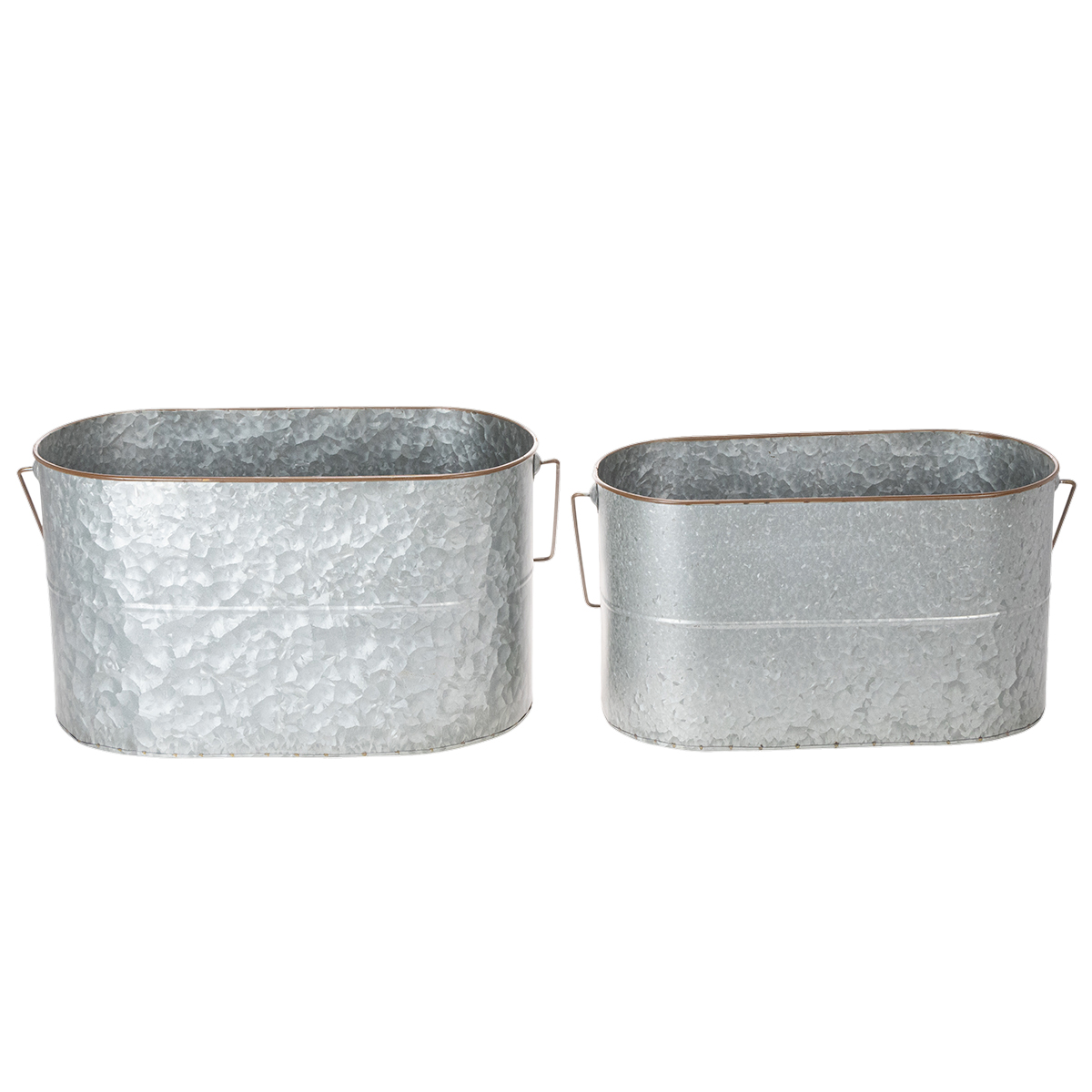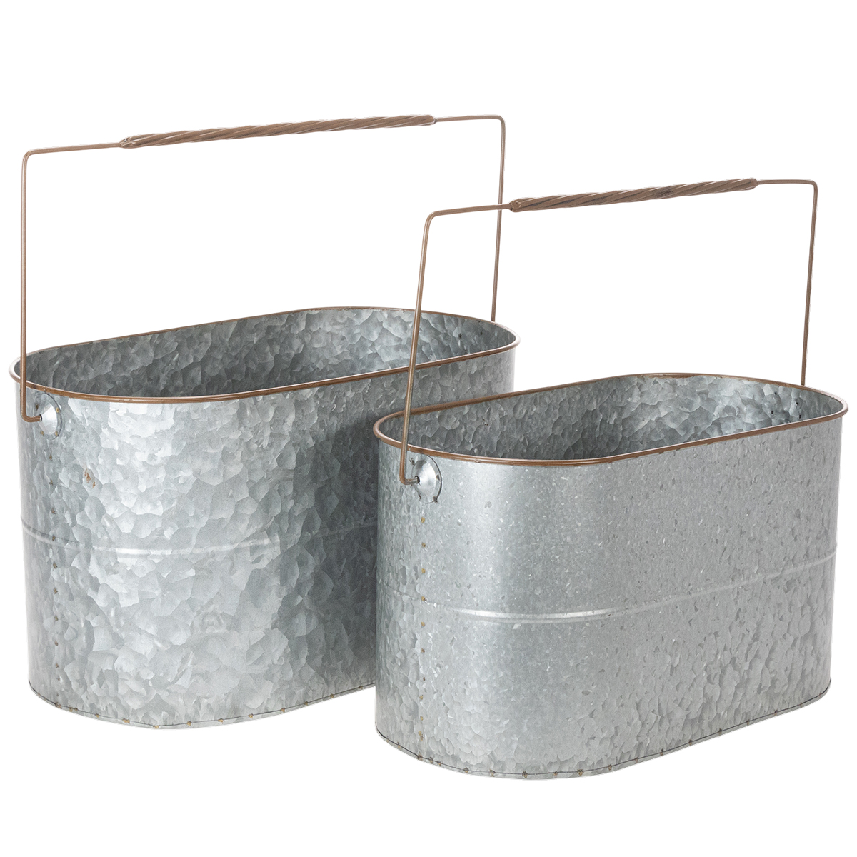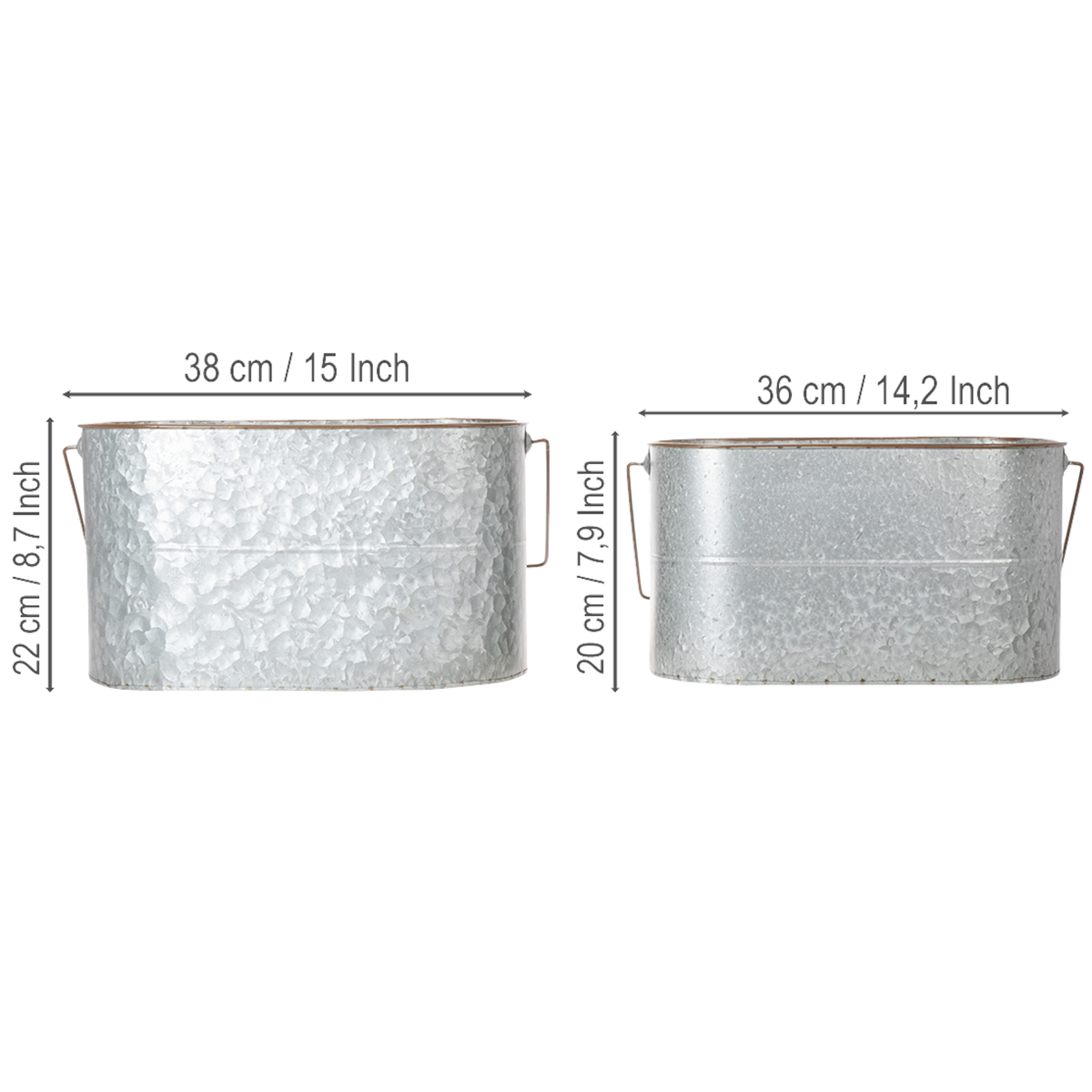 Metalinis vazonas su rankena, sidabro spalvos, rudos spalvos, aukštis 22/20 cm, ilgis 42/40 cm, 2 vnt. rinkinys
