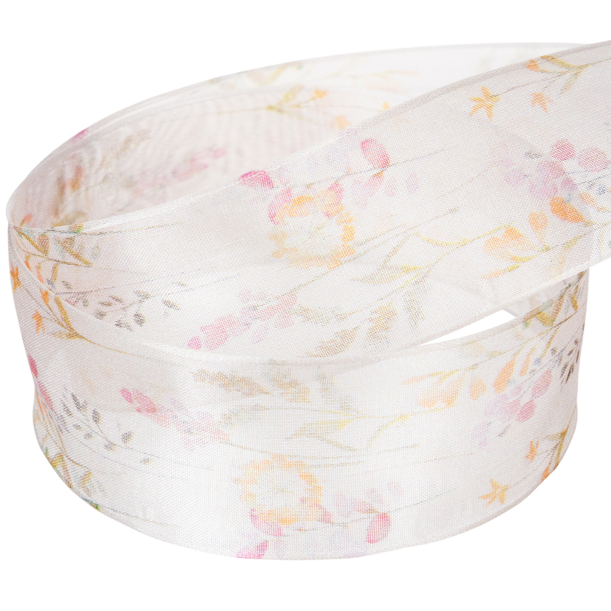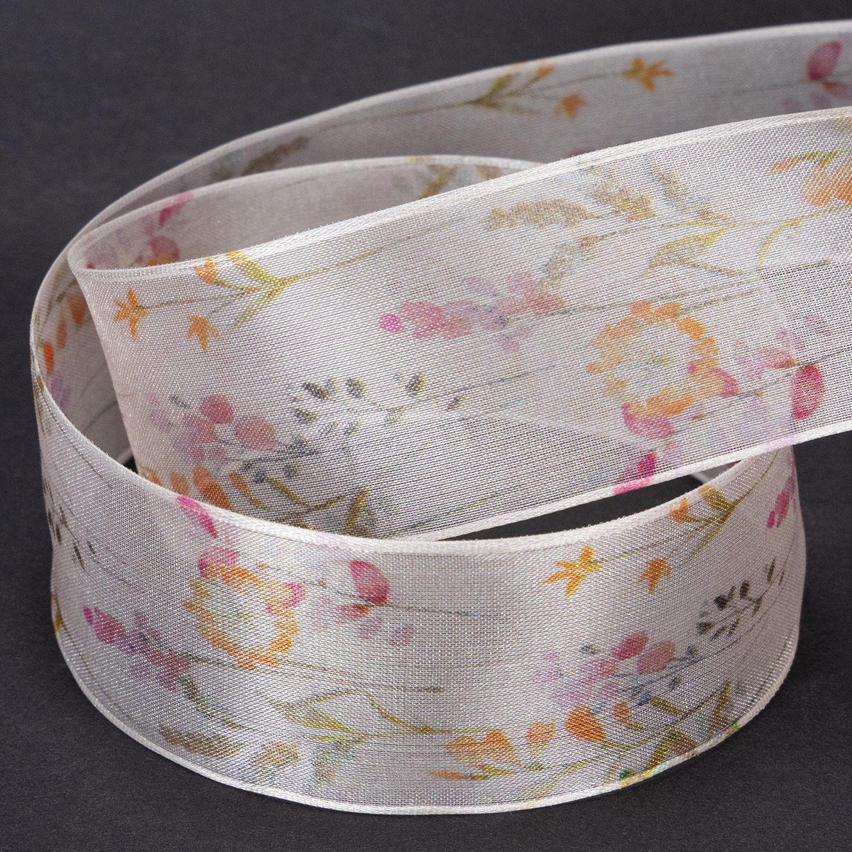 Su organzos audiniui būdingu šilkiniu blizgesiu ir subtilia spalvų gama tarp rožinės, abrikosų ir oranžinės spalvos, gėlių ir augalų motyvai atrodo kaip iš japoniško sodo. Kad ir koks kvapnus ir subtilus atrodytų kaspinas, formą išlaikantys kraštai leidžia susirišti lankelius, kurie atrodys tiksliai taip, kaip tikėjotės!