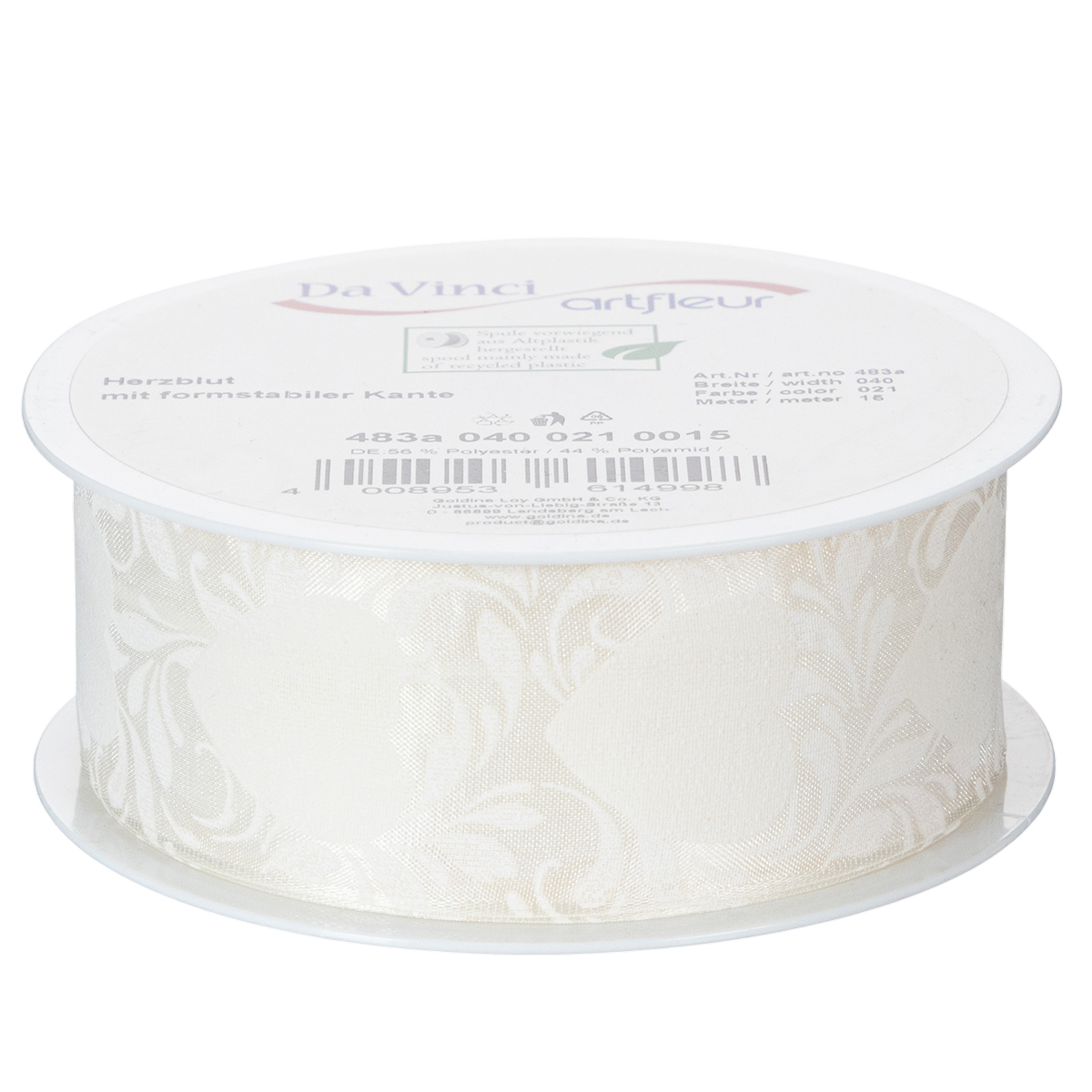 Platus kreminės spalvos medžiaginis kaspinas tinka romantiškoms stalo dekoracijoms, vestuvių dekoracijoms ir vainikams. Tačiau su šia juostele taip pat visada galite meistriškai patobulinti gėles ir puokštes ar tą ypatingą dovaną.