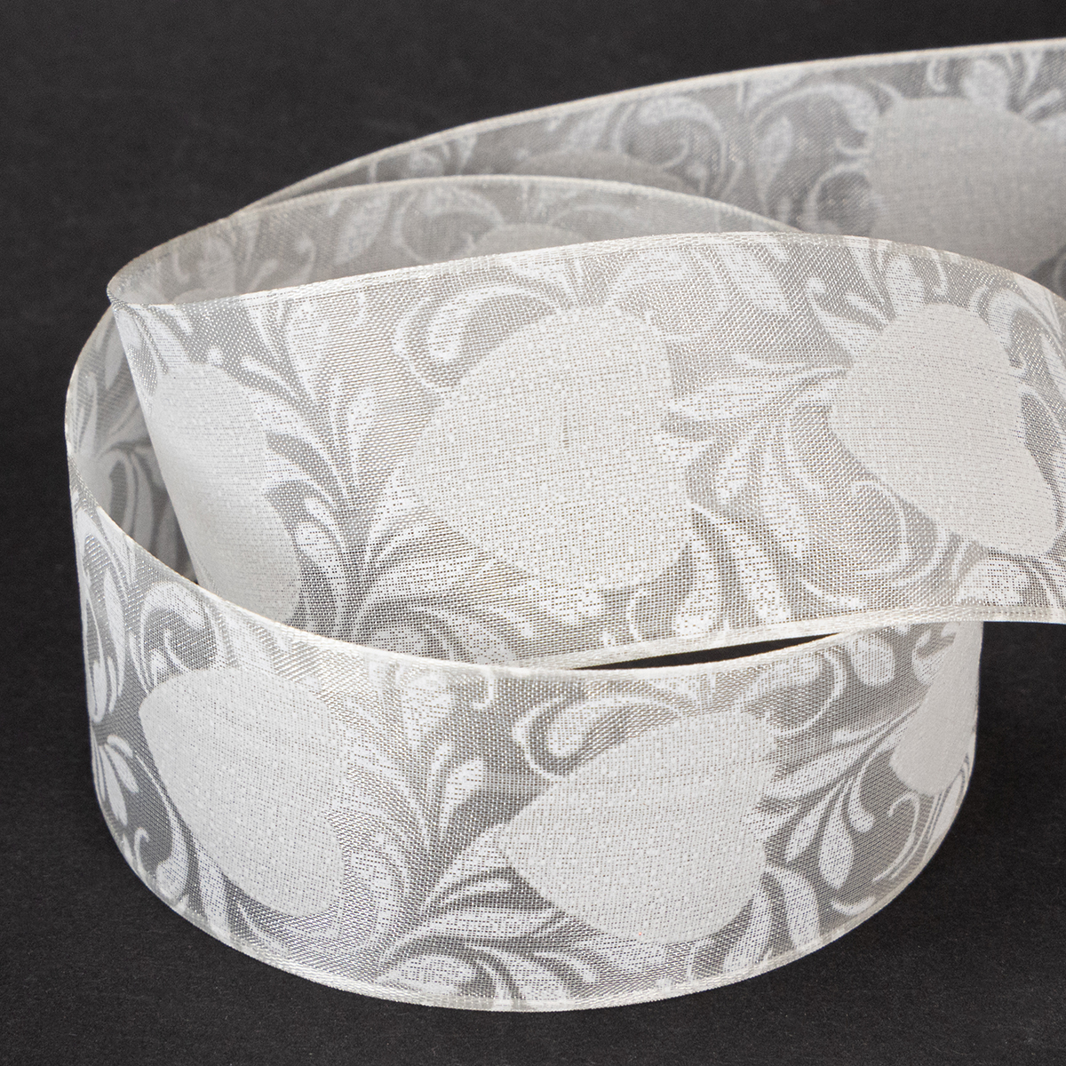 Gležnas širdeles supa lapinės kaip gėlės šakos ir margintos skaidraus organzos audinio, suteikiant juostelei rafinuotą, nėrinius primenančią išvaizdą. Šiltas kreminis dekoratyvinės juostelės tonas yra nesenstantis ir tuo pačiu perteikia tam tikrą nostalgiją.
