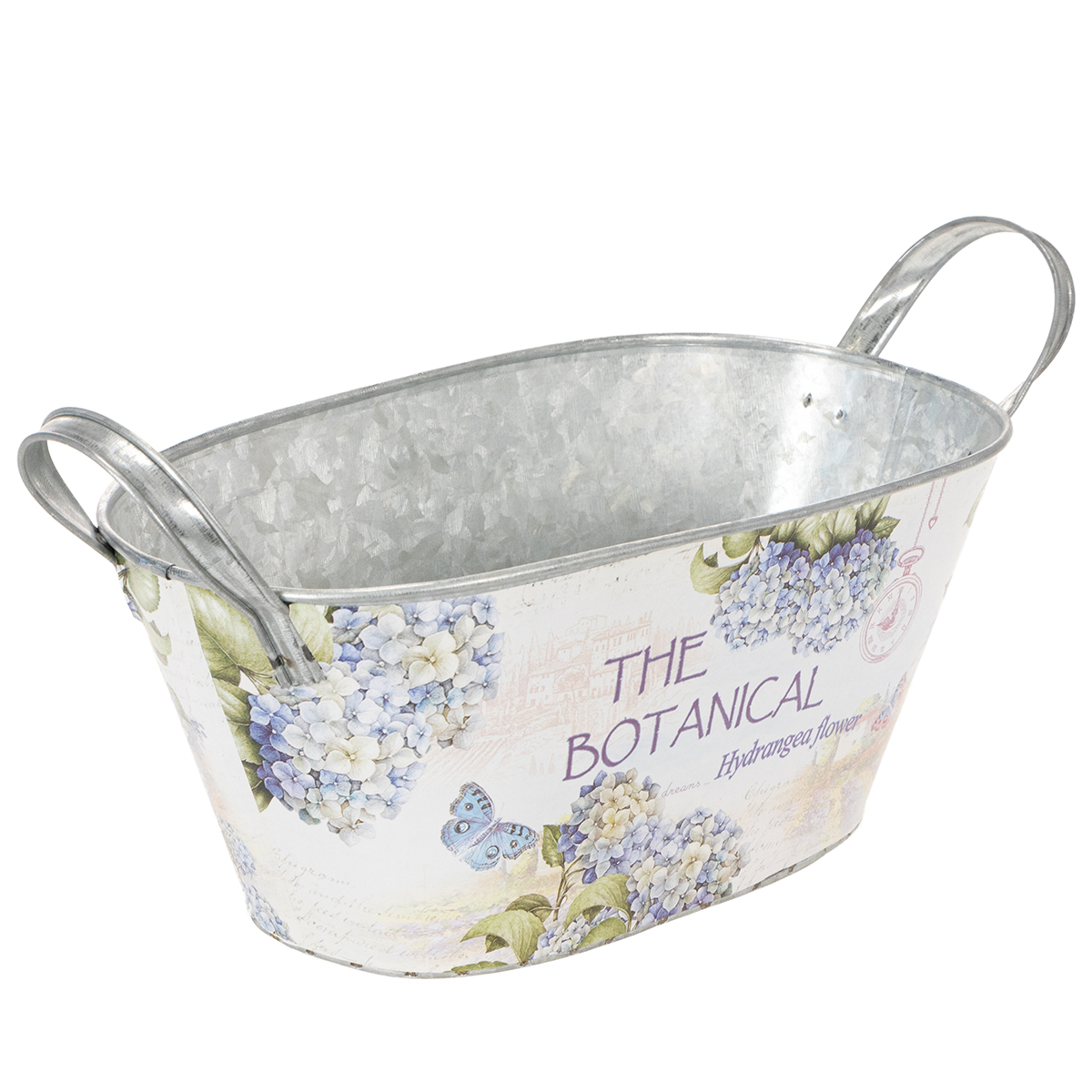 Ovalus metalinis gėlių vazonas su rankenomis, hortenzijoms, 32 × 15 × 15 cm