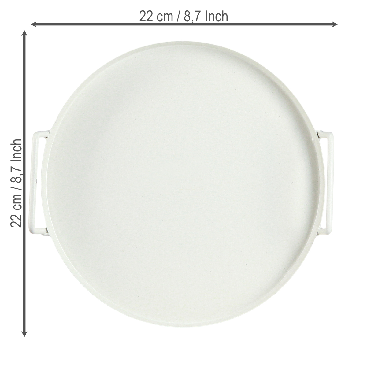 Šis baltas, apvalus padėklas, kurio skersmuo yra 22 cm, o aukštis – tik 3 cm, yra idealus sprendimas įvairiems tikslams. Pagamintas iš tvirto metalo, serviravimo padėklas žavi ne tik savo patvarumu, bet ir universaliu funkcionalumu. Praktiškos rankenos leidžia lengvai ir saugiai transportuoti gėrimus, užkandžius ar net pusryčių rinkinius tiesiai ant sofos – arba į sodą vasaros vakarėliui!