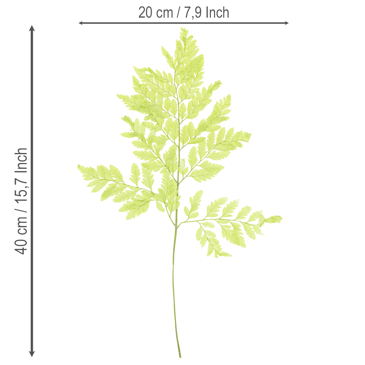 Šiame rinkinyje yra dešimt stiebų, kurių kiekvienas yra 40 centimetrų aukščio. Subtili džiovintų paparčių tekstūra ir šviesiai žalia spalva puikiai dera su kitomis medžiagomis, tokiomis kaip mediena, stiklas ar keramika. Naudokite šiuos augalus kaip ilgaamžes paparčių dekoracijas savo namams, kad sukurtumėte natūralią ir jaukią atmosferą. Atraskite begales dizaino galimybių ir leiskite savo kūrybiškumui lietis!