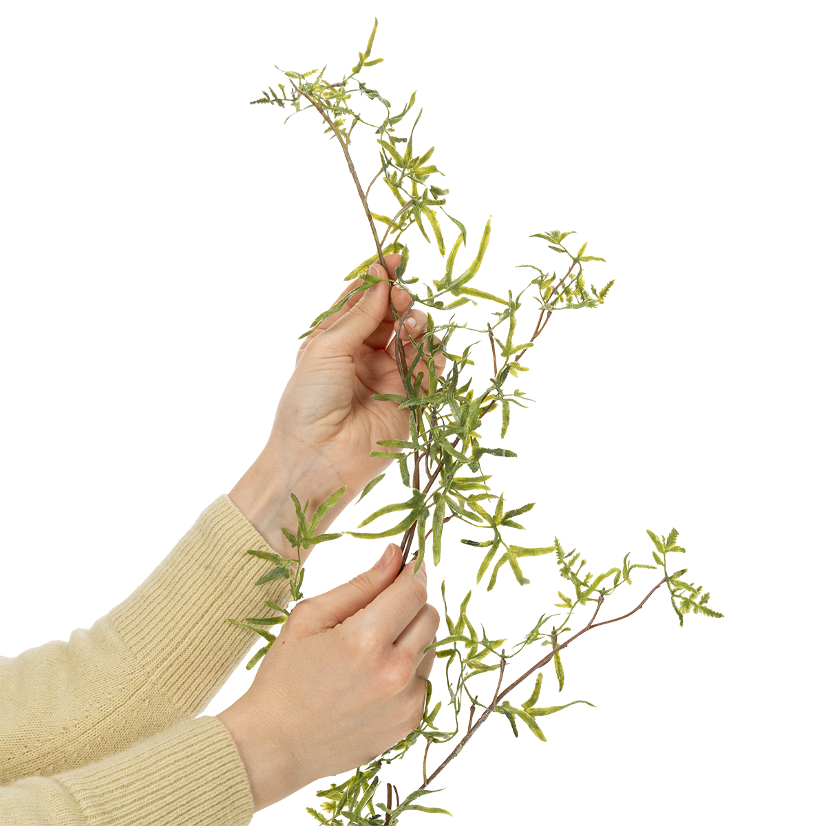 Šparagų girlianda – tikras universalus dekoracijų pasaulio akcentas. Ploni, subtilūs lapai suteikia jai lengvumo, todėl ji idealiai tinka moderniam, kaimiškam ar net klasikiniam interjero dizaino stiliui. 170 cm ilgio ji atveria daugybę kūrybinių idėjų: nesvarbu, ar tai būtų stalo puošmena, turėklų apjuosimas, ar atmosferinis durų ir langų rėmas. Pagaminta iš tvirto plastiko, dirbtinė girlianda žiba gaiviai žaliu atspalviu, kuris atrodo apgaulingai tikras. Ji yra patvari, lengvai valoma ir ilgai išlieka puikios būklės. Puikiai tinka visiems, norintiems mažai priežiūros reikalaujančio, bet stilingo dekoro. Norint ypač harmoningo vaizdo, ją galima derinti su gėlėmis arba LED lemputėmis. Tai papildo bendrą vaizdą ir sukuria dar šventiškesnę atmosferą. Ši girlianda yra tikras akcentas, ypač vestuvėse, furšetuose ar renginiuose lauke. Įsivaizduokite ją kaip romantišką arką savo ceremonijai arba stilingą apvadą furšetams. Ji tinka visur, kur norima elegancijos ir natūralumo – ir be didelių pastangų. Sudėliota ji išlieka stabili ir pritraukia daugybę susižavėjimo kupinų žvilgsnių.